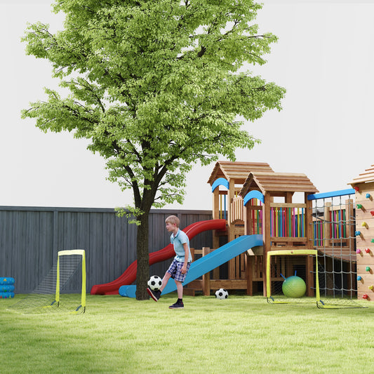 HOMCOM Two Football Goal Nets, Foldable Outdoor Sport Training Equipment, for Teens, Adults, with Carrying Bag, Yellow