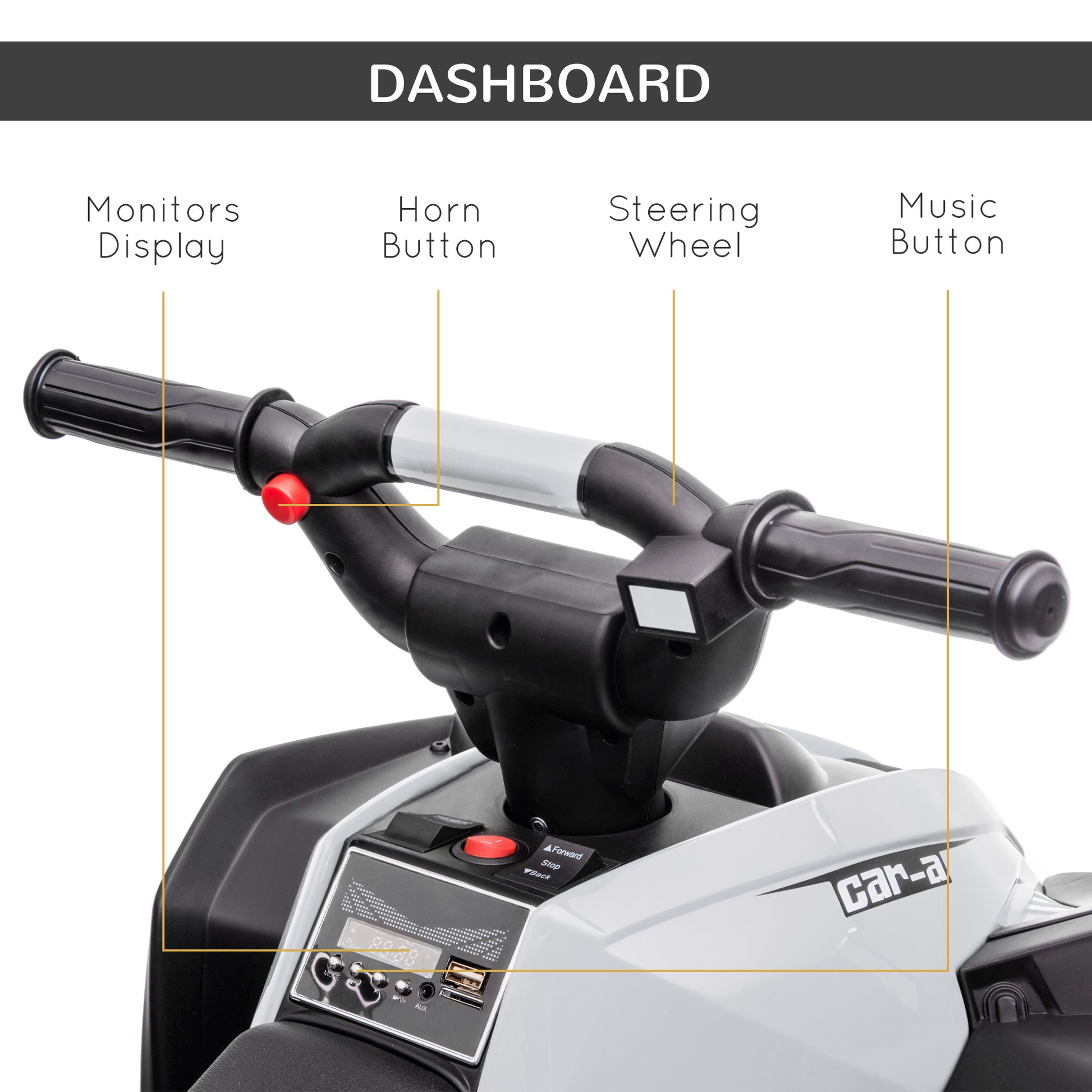 HOMCOM 12V Ride-On Quad Bike w/ Music, Horn, for Ages 3-5 Years - White