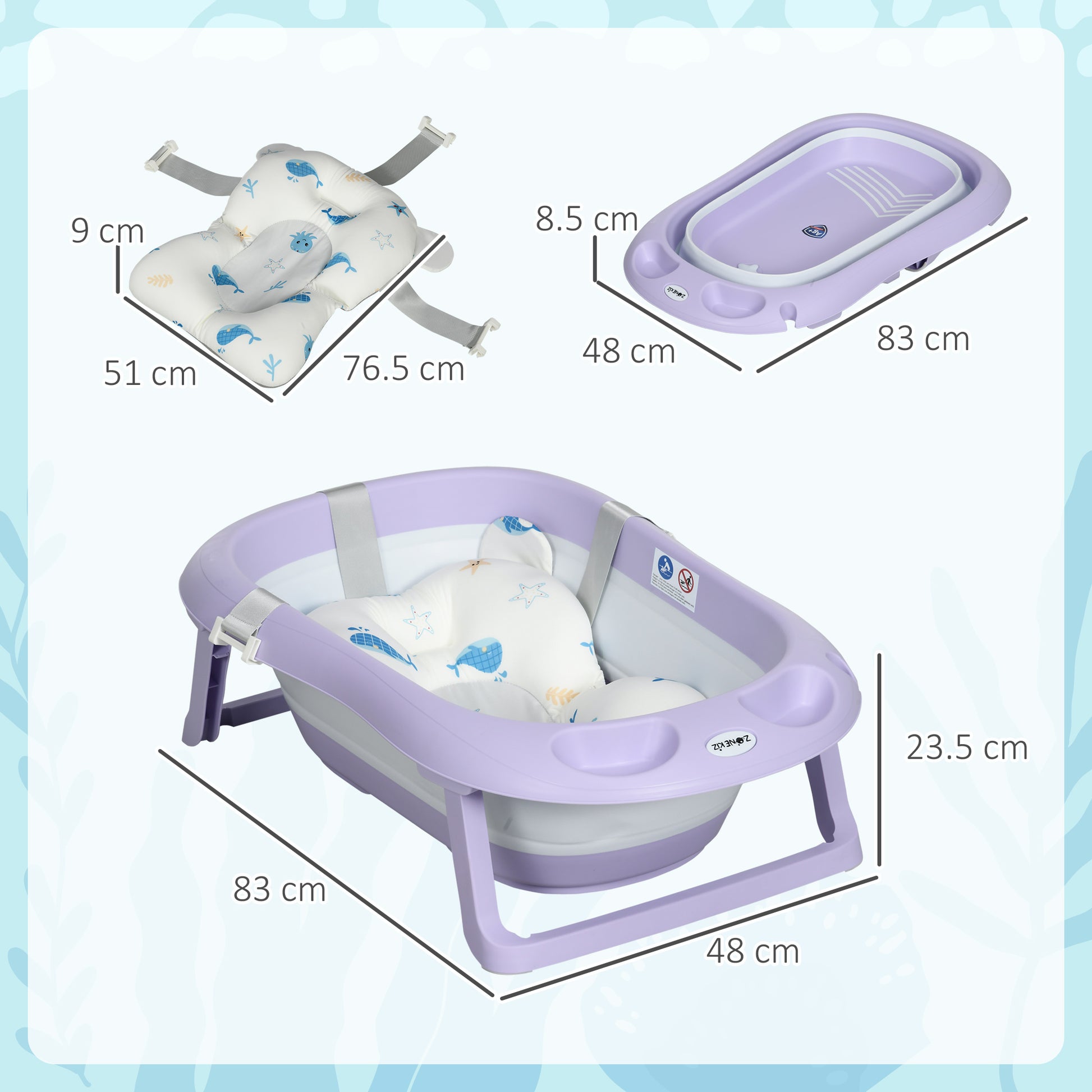ZONEKIZ Foldable Baby Bathtub, with Non-Slip Support Legs, Cushion Pad, Shower Holder - Purple