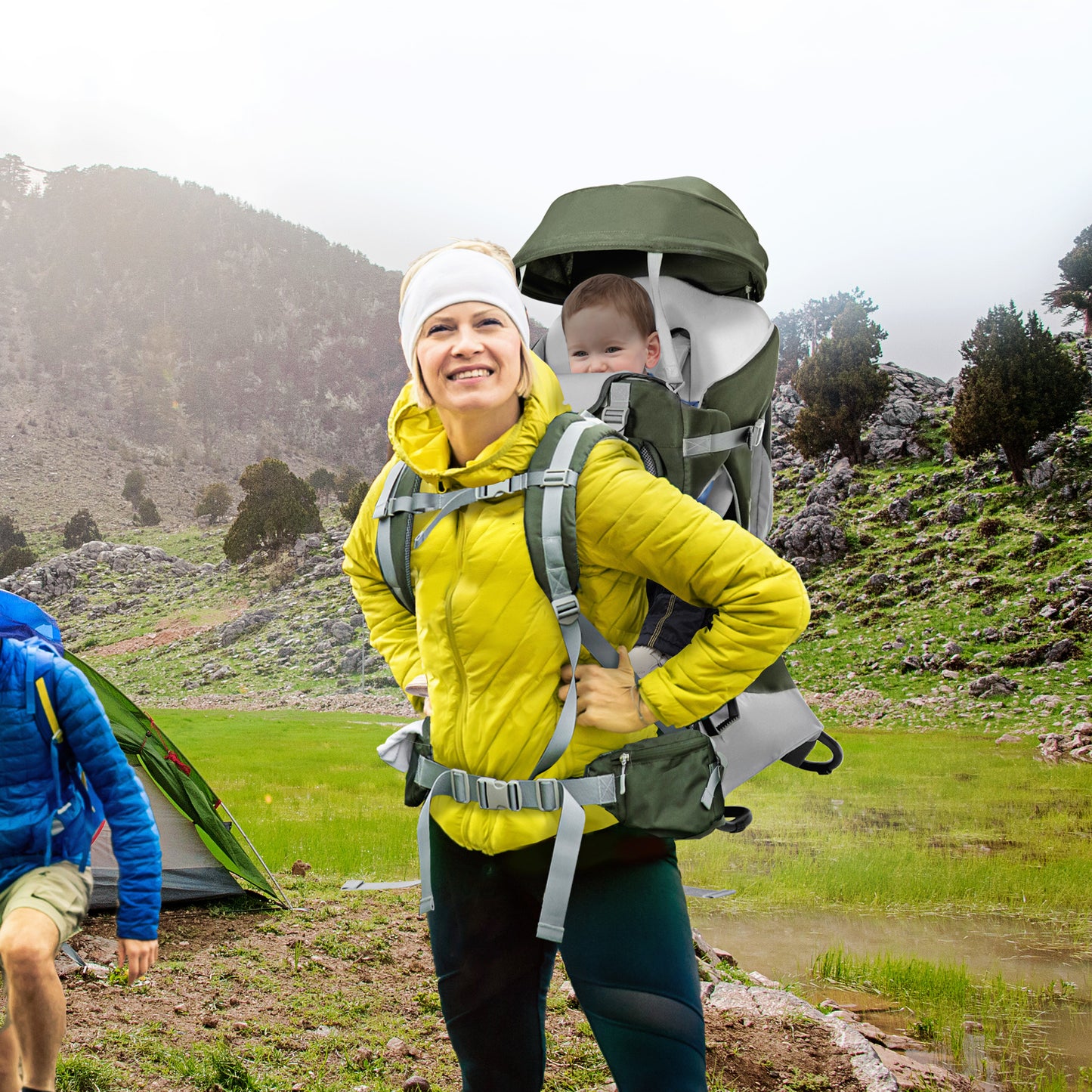 HOMCOM Toddler Hiking Backpack Carrier w/ Removable Small Bag, Outdoor Child Carrier w/ Stand, Canopy, Adjustable Waist Belt, Pockets, Holds up to 18 kg