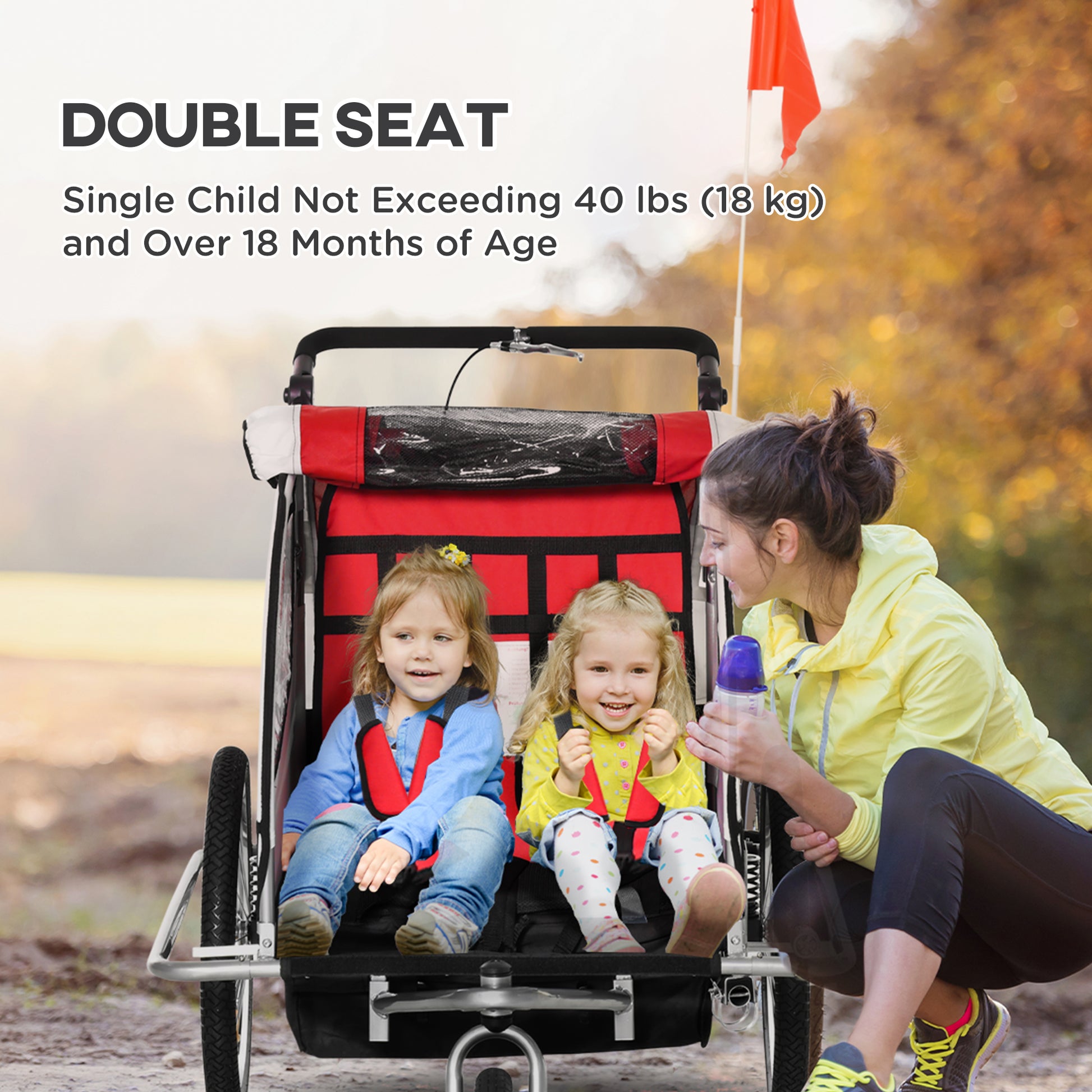 HOMCOM Child Bike Trailer Baby Bicycle Trailer 360° Rotatable for 2 Kids with Steel Frame LED Hitch Coupler Red