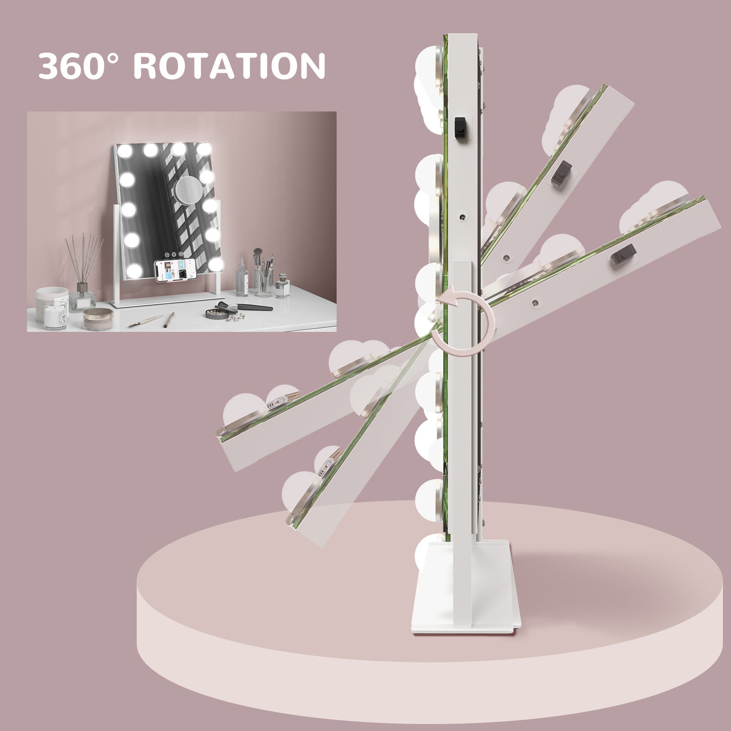 HOMCOM 12 LED bulb Tabletop Makeup Mirror, with Adjustable Settings