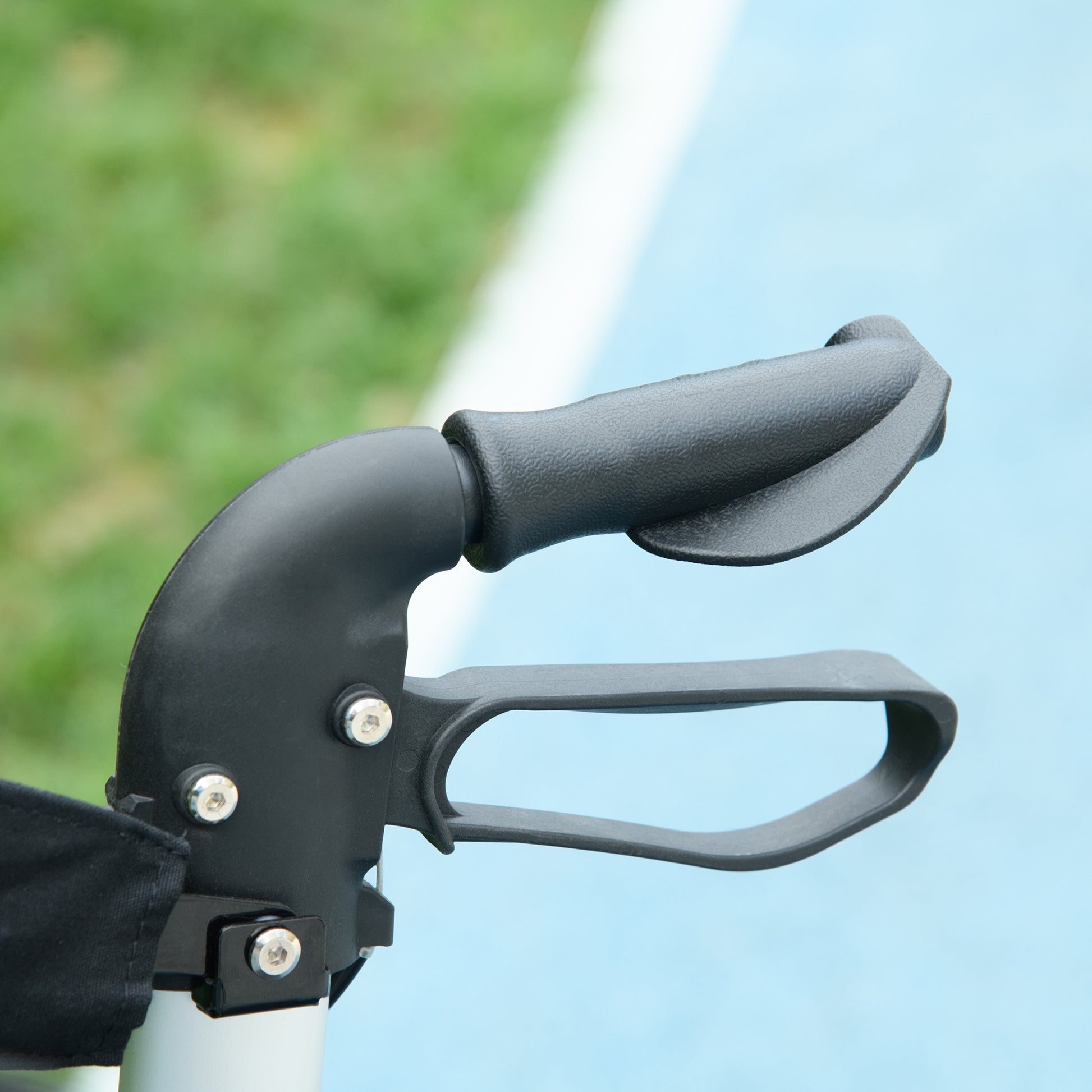This HOMCOM lightweight rollator walker rolls with you, making journeys stress free. An aluminium frame for a strong, yet lightweight core, it is fitted with a seat so you can take a break whenever you want. The foldable design means you can store it away easily too. A 39 x 10cm storage bag to take small essentials with you on the journey. Two large front wheels and two smaller back wheels for smooth rolling, this walking frame with wheels is complete with a dual brake for safety.