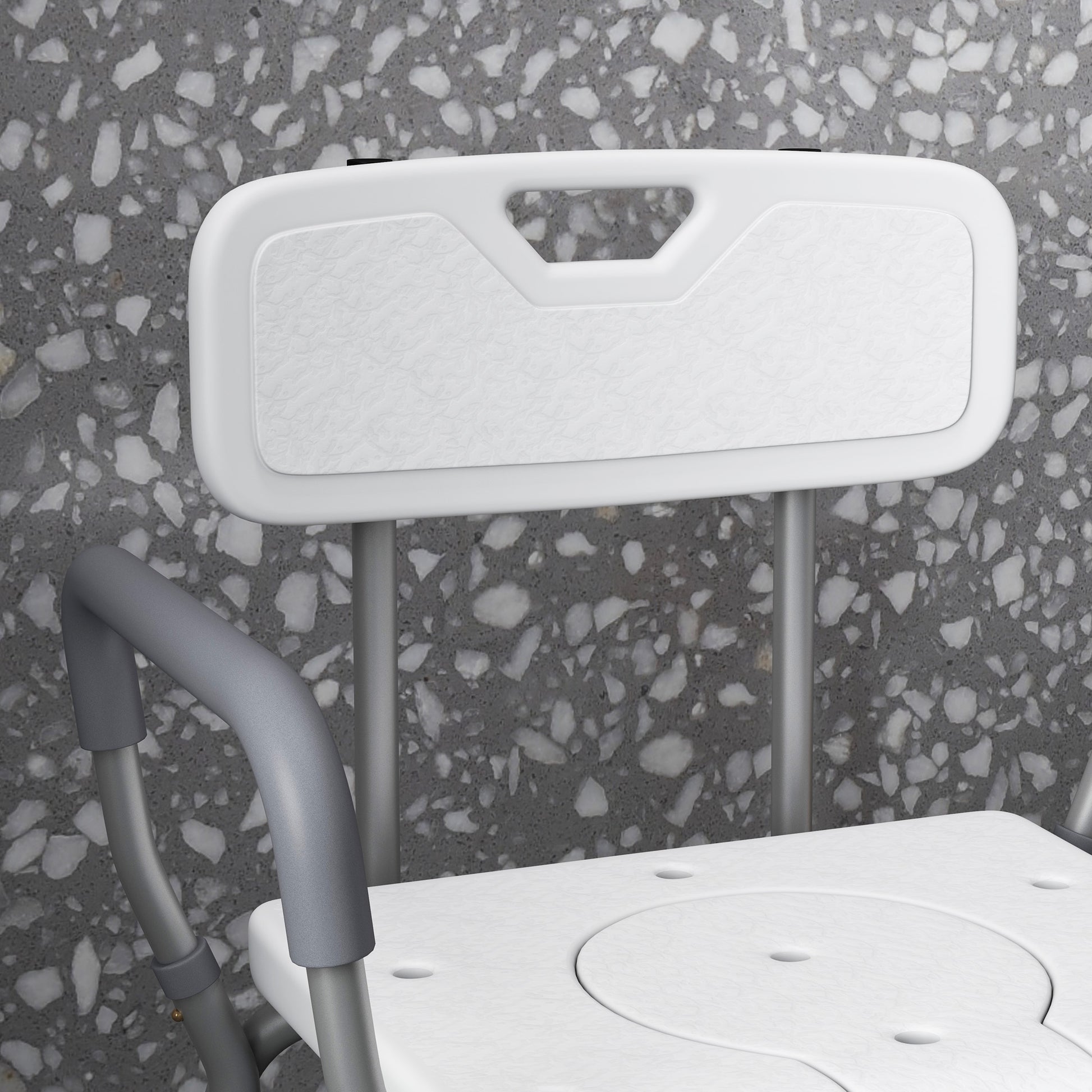 HOMCOM Height Adjustable Shower Stool with Arms and Back, Non-Slip Bedside Commode with Detachable Bucket for Elderly, White