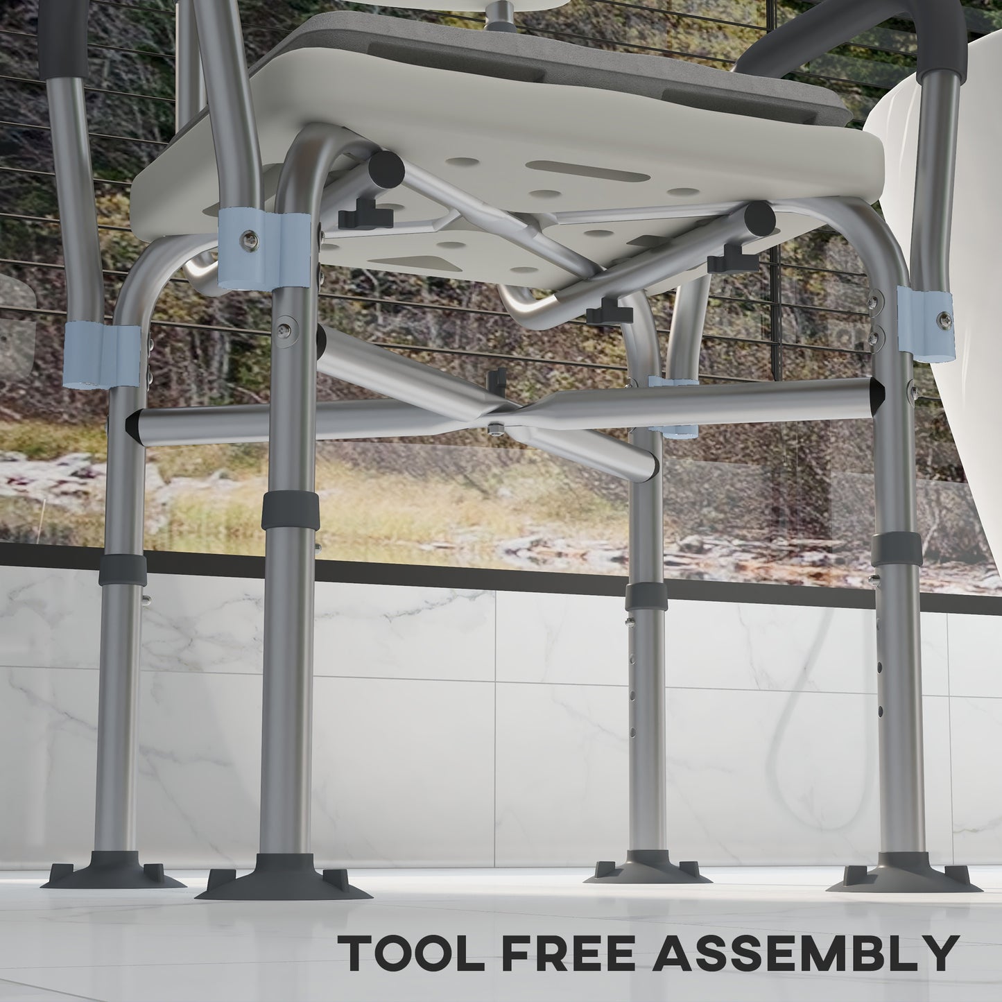 HOMCOM Aluminium Shower Chair with Backs and Arms, Height Adjustable Shower Seat with Removable Padded Cushion, Bath Stool for Seniors, Disabled, Pregnant, White