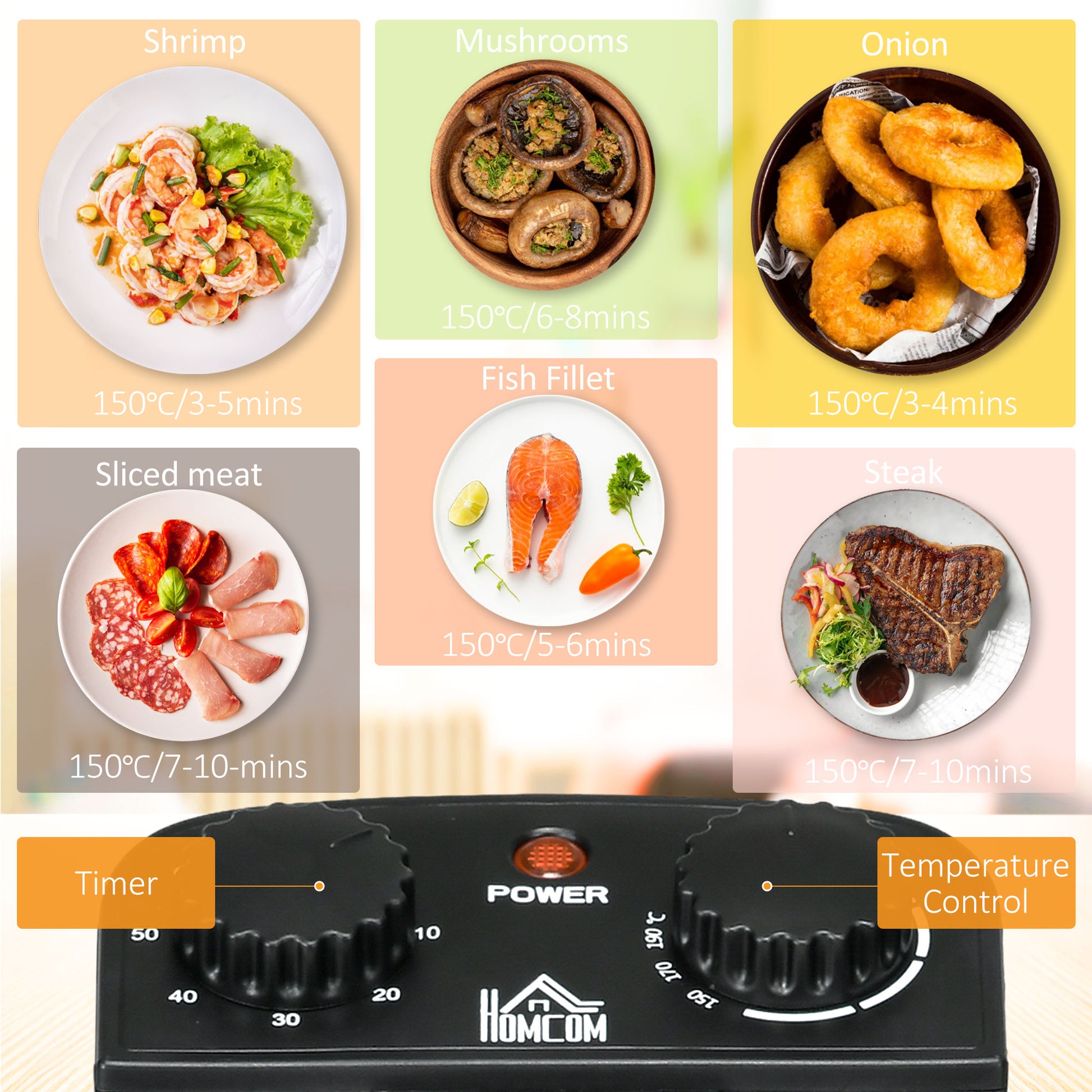 Delicious fried foods, in the familiarity of your own space. This HOMCOM 3L deep fryer is here to transform chips, chicken, doughnuts, tofu (+ much more) into crispy perfection. Powerful 2000W power, it heats up quickly so you don't have to wait long. Adjust the temperature between 150°C-190° for better control. The timer on this deep fat fryer means you can set it run to a required time for safety. Basket included, with cool-touch handle. Cut-off protection if fryer overheats.