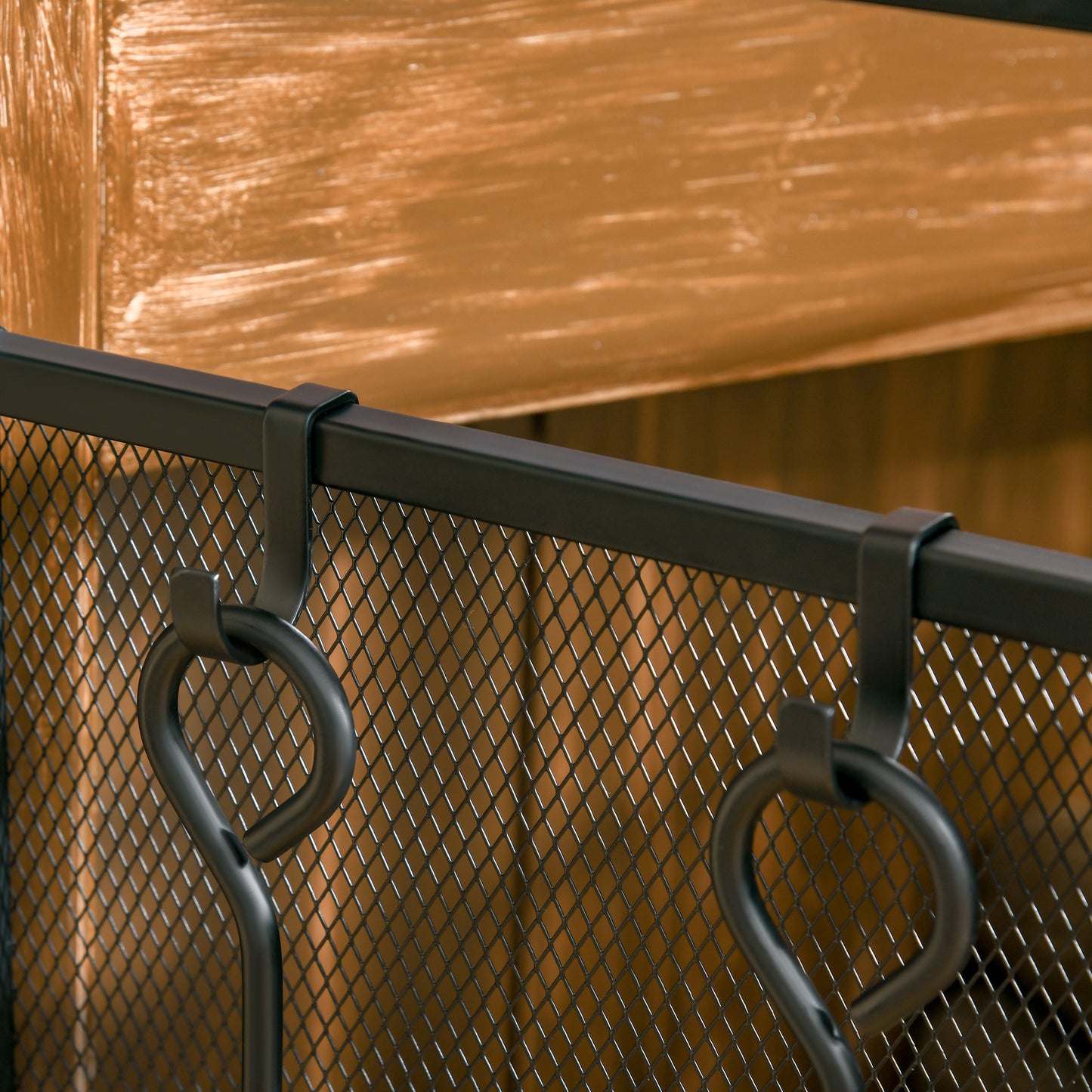 Bring security and beauty to your fireplace - this HOMCOM protective guard is here to do both. A three-panel design, you can set the shape easily, so you can shield different areas easily. Each panel comes with a mesh part - protecting the other side from flying embers and sparks. Middle panel comes with two doors so you can easily access the fire, without having to move the whole guard. Complete with broom, shovel, poker and charcoal tong; each hang up with provided hooks.