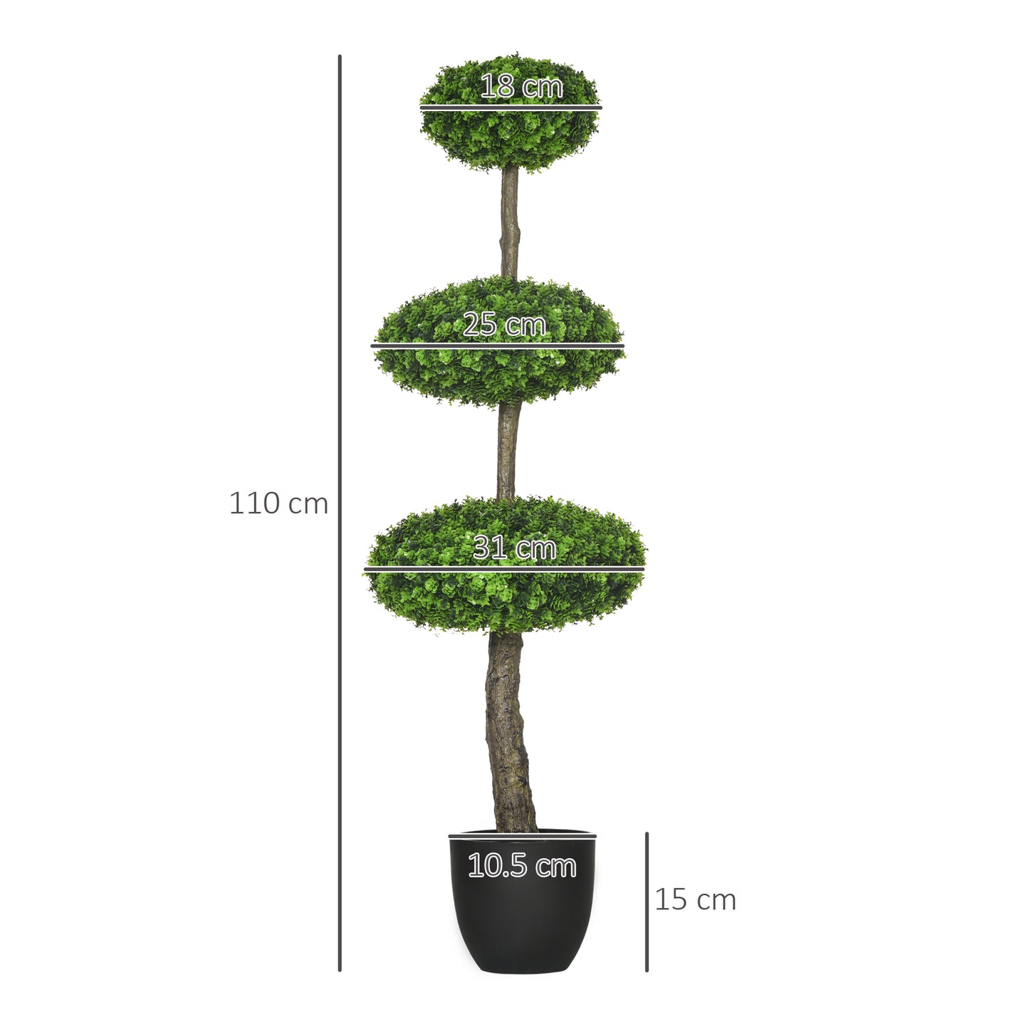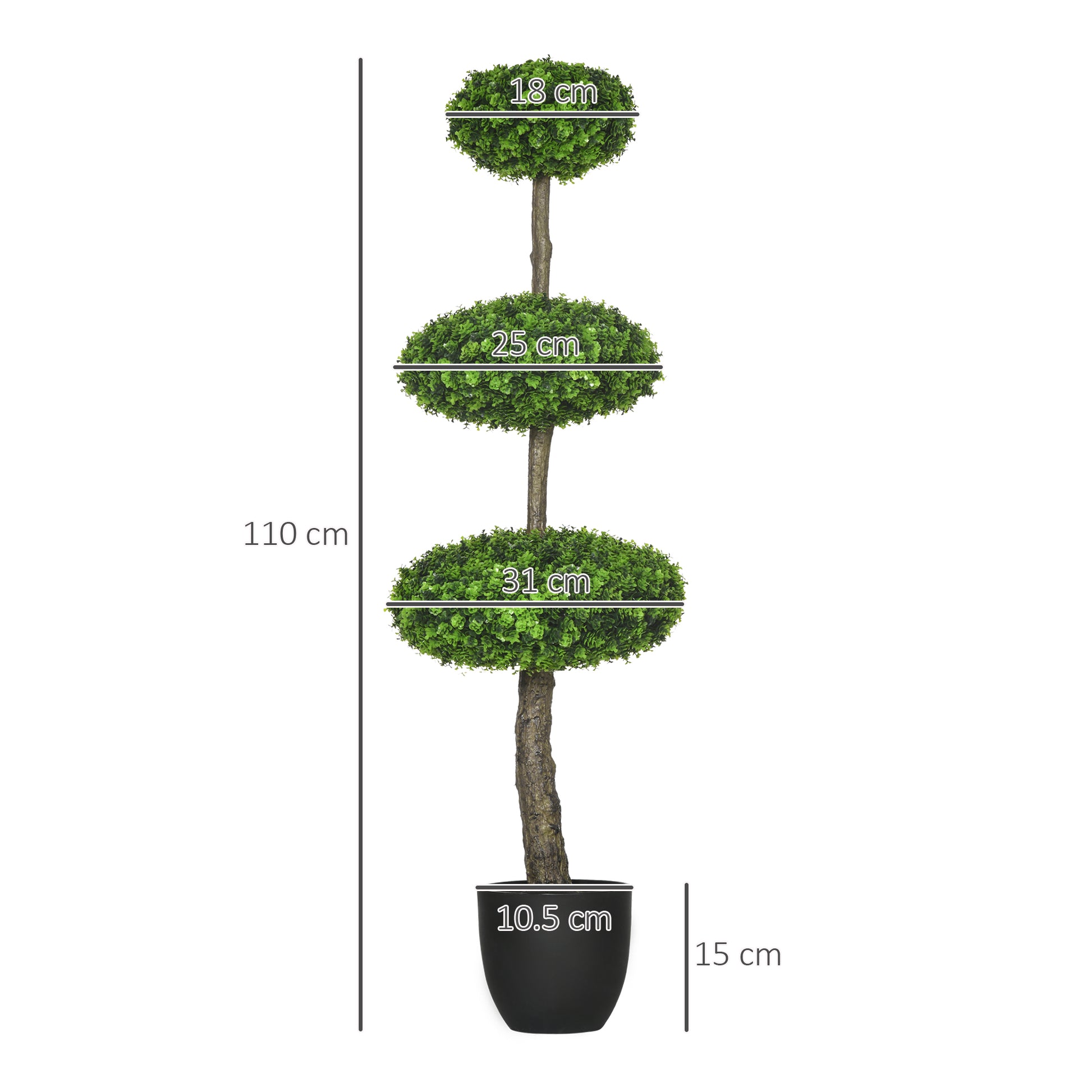 HOMCOM Set of 2 Artificial Plants Boxwood Ball Topiary Trees 110cm Decorative Faux Plants in Pot for Home Indoor Outdoor Green