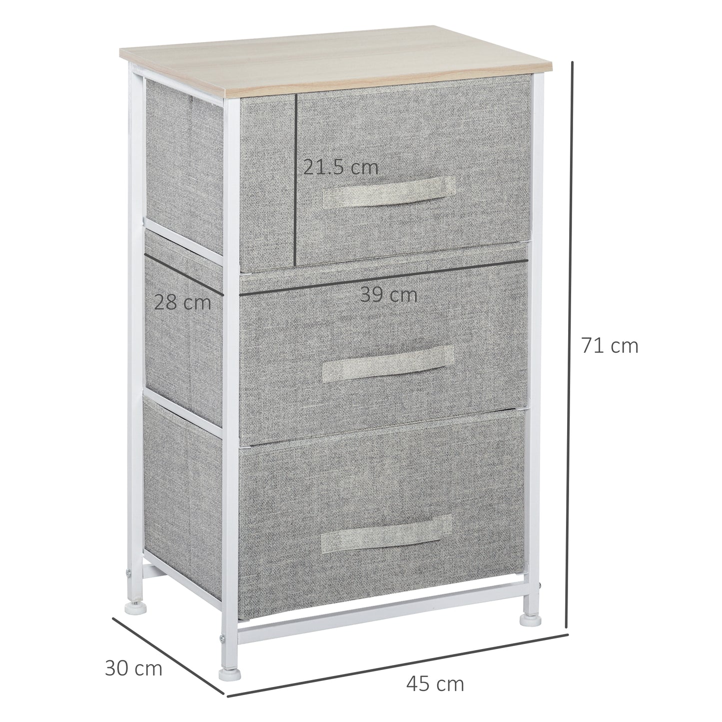 The simplicity of this three-drawer unit from HOMCOM means it will welcome itself into your home with ease. The light grey and white colourway, in a classic sharp shape, works great all over the home - from the bedroom, to the hallway, living room and beyond. With a powder-coated steel frame for strength, it is fitted with three thick linen drawers for storage. It's finished with handles on the drawers to open them easily.