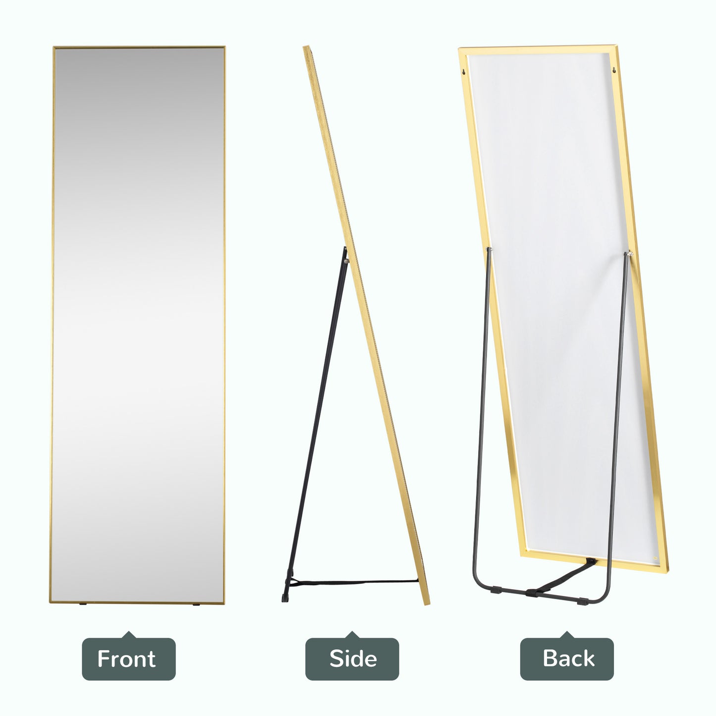 HOMCOM Full Length Mirror Wall-Mounted, 160 x 50 cm Freestanding Rectangle Dressing Mirror for Bedroom, Living Room, Gold Frame