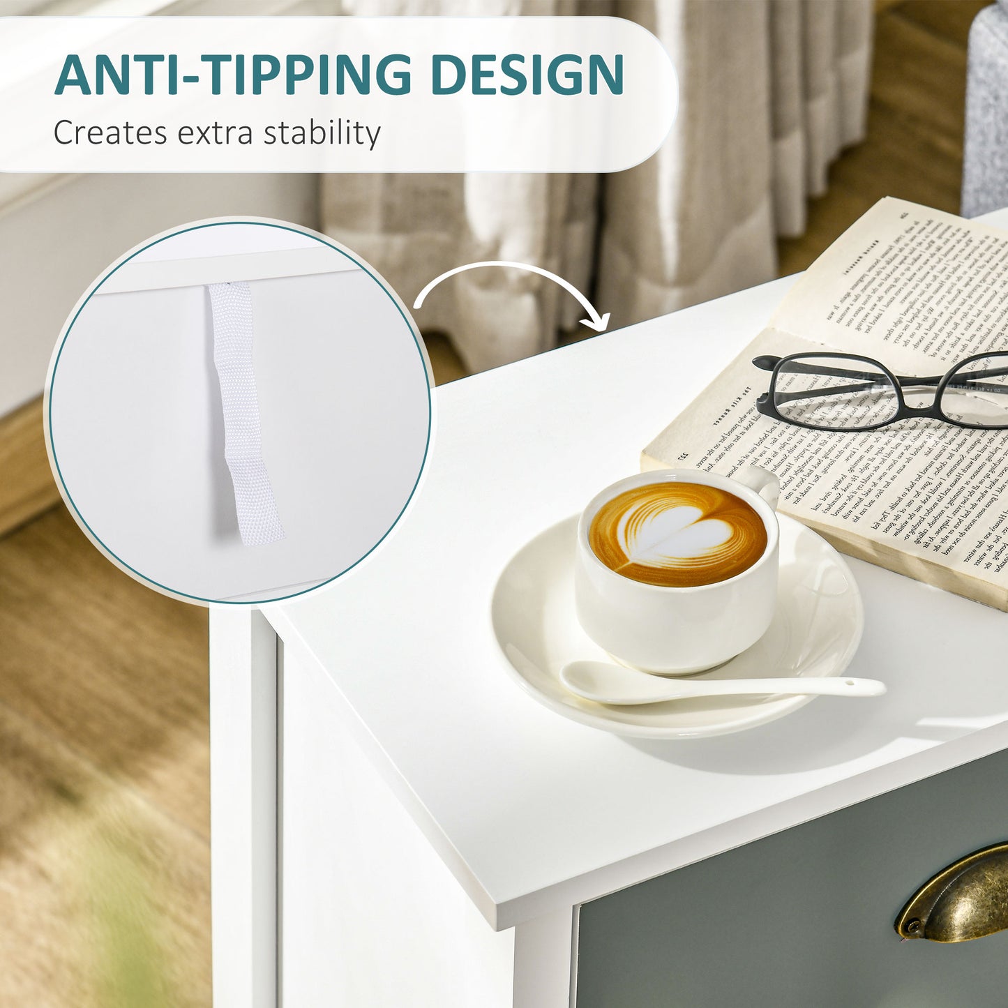 HOMCOM Bedside Table Set of 2 Chest of 3 Drawers Shabby Chic Nightstands with Metal Handle Sofa Side Table for Living Room, Bedroom,Grey and blue