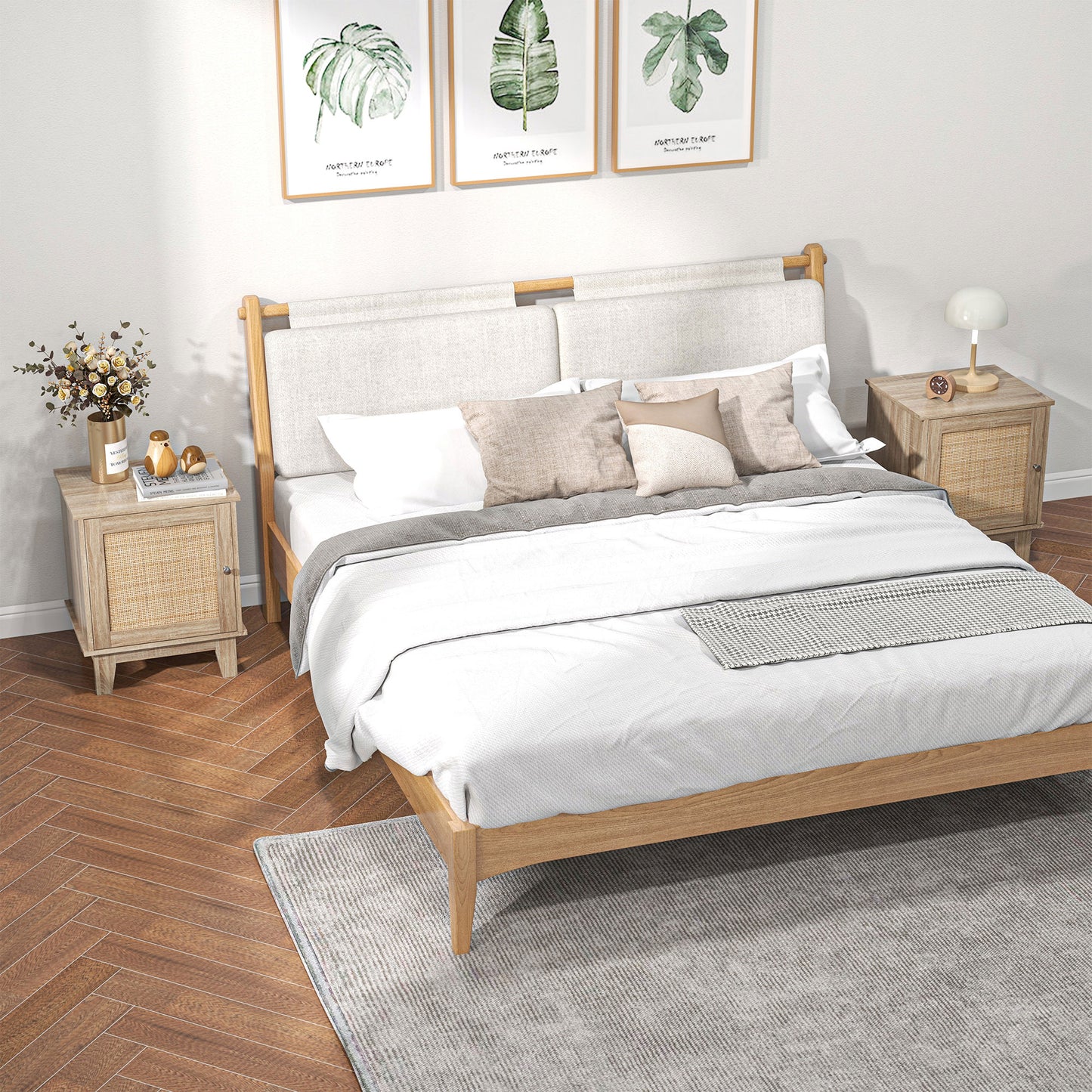 HOMCOM Bedside Table, Bedside Cabinet with Storage Cupboard, Side End Table with Rattan Element for Living Room, Bedroom, Set of 2, Natural