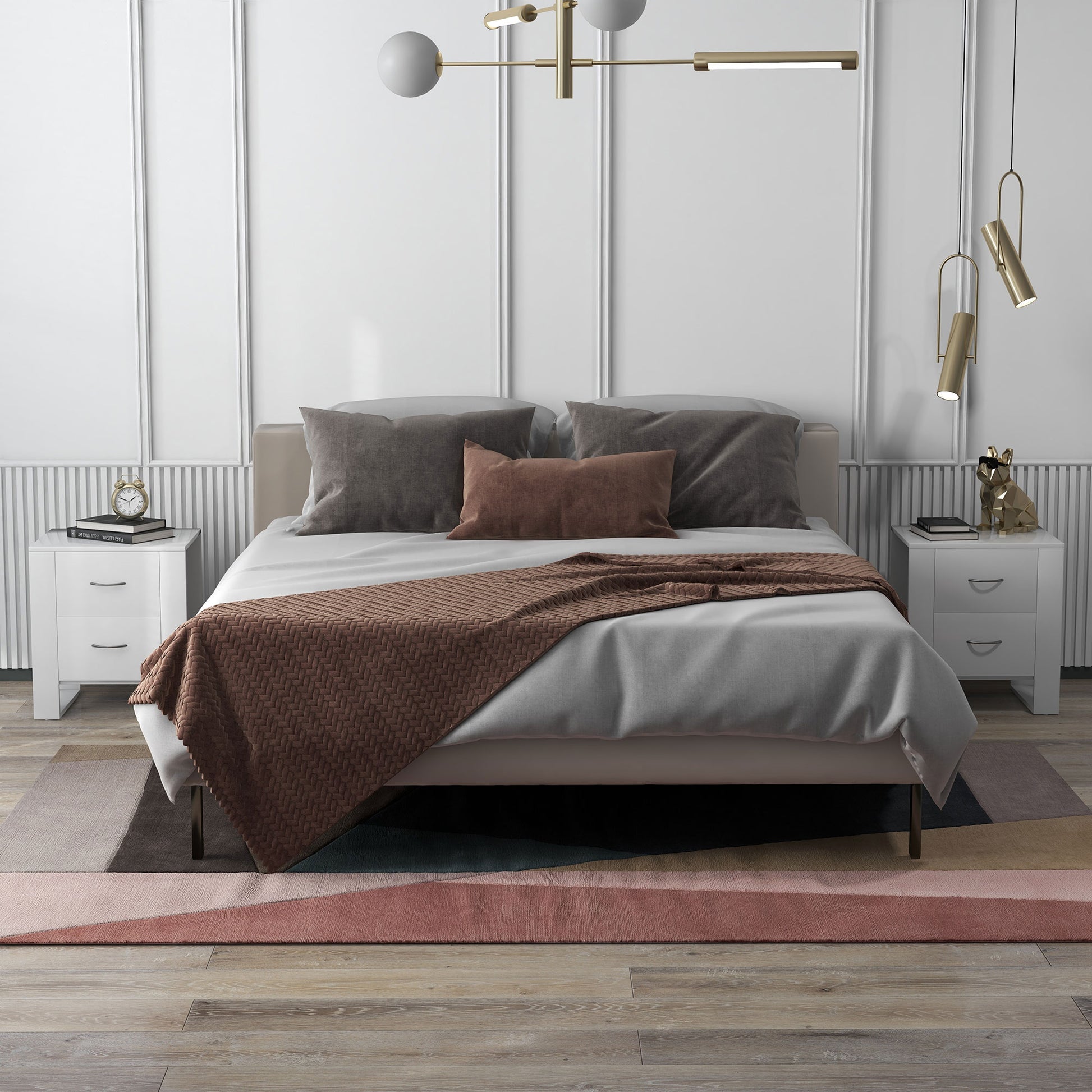 With its modern boxy shape, this end table is sure to bring in a luxe feel into your nightly routine. Its formed of two drawers, giving you room for keeping what you need stored within easy reach. Using particle board for the structure, it is solid and tough to withstand everyday use, and is coated with melamine for light protection against marks and stains. The side legs, which take up a large proportion of the size, provide complete balance and stability to the storage organiser.