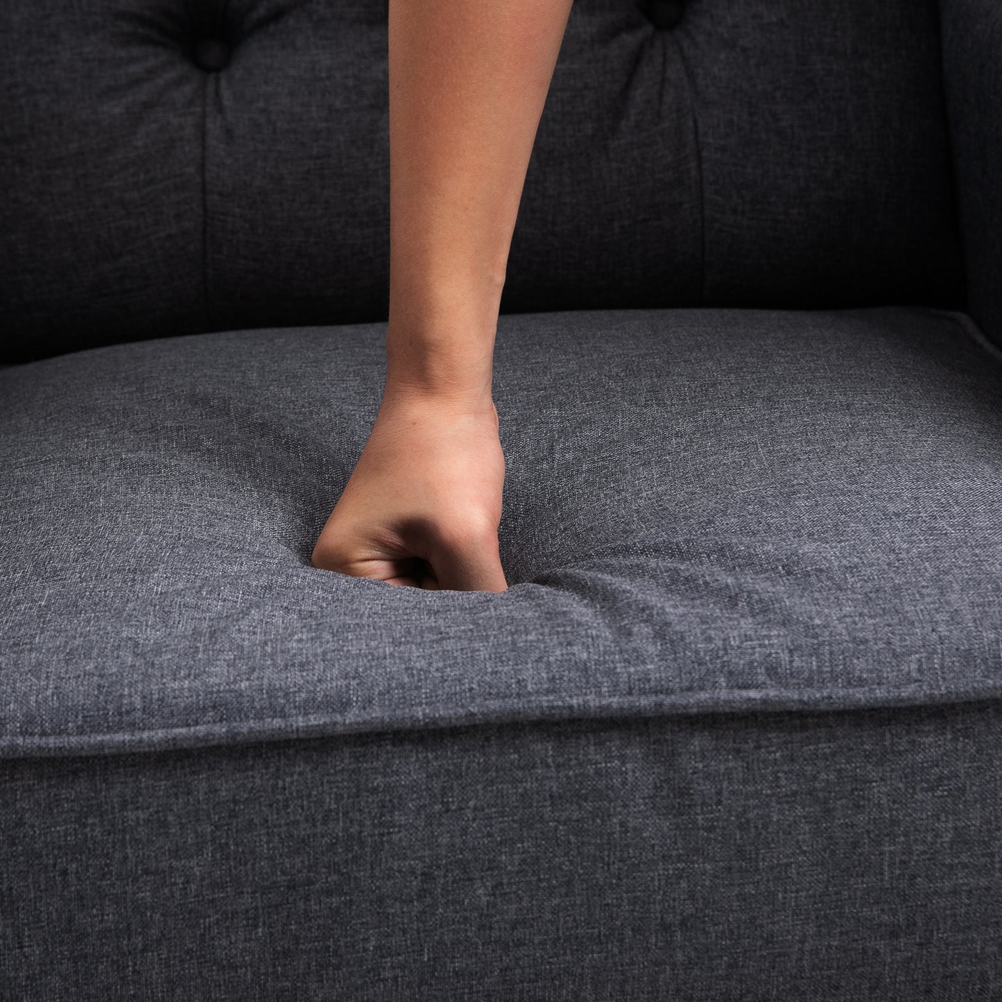 Take your relaxation to the next level with this HOMCOM recliner armchair. A strong, supportive wooden frame, it's fitted with thick sponge for comfort. The back reclines to 150° - lie back and relax to a position you want. Tufted on the back for a vintage and traditional look, bringing character into your space. Its finished with linen upholstery for easy maintenance and four solid wood legs to keep it stable on the floor.