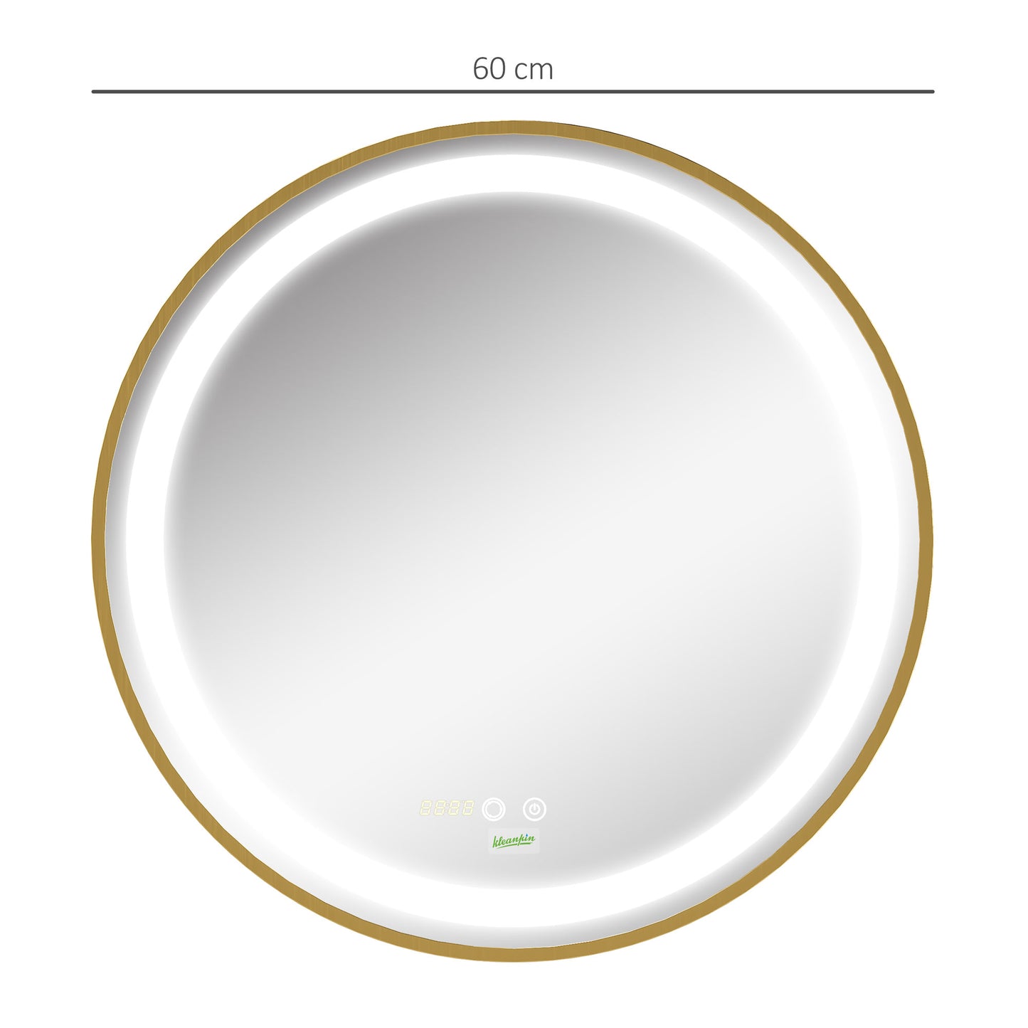 kleankin Round LED Bathroom Mirror, Dimmable Lighted Wall Mount Mirror with 3 Colours, Time Display, Memory Function, Hardwired