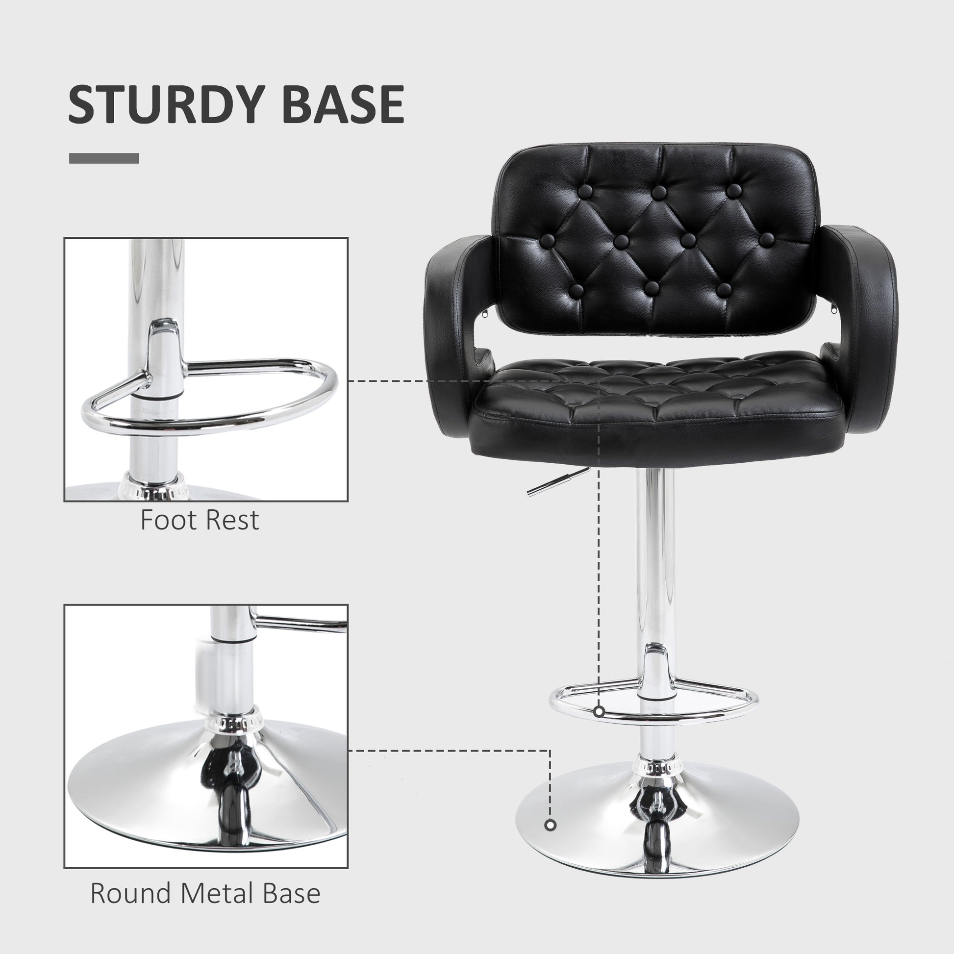 This HOMCOM adjustable stool comes with a full back support with a modern style, it is made with PU and a chrome base. The kitchen stools with backs can also be moved and adjusted in height and has a foot support for comfort, the bar stool has a stylish and modern feel with a comfortable seating position. It can be used in the kitchen with your breakfast bar, in the lounge and would suit any room décor.