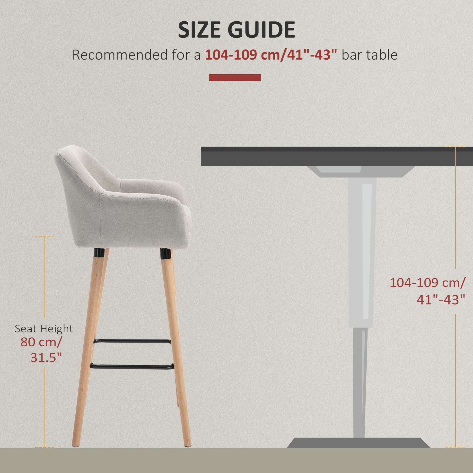 Let modern elegance take the forefront in your home seating, thanks to this set of two bar stools from HOMCOM. Linen upholstery is stylish and allows the skin to breathe naturally. Solid wood legs for full support, with lower footrests to elevate the lower body. Tub shaped seats add to the style, with a padded seat for comfort. Mid-rise backs offer a touch of support when you lean back. Comes in a set of two for a matching dining area look.