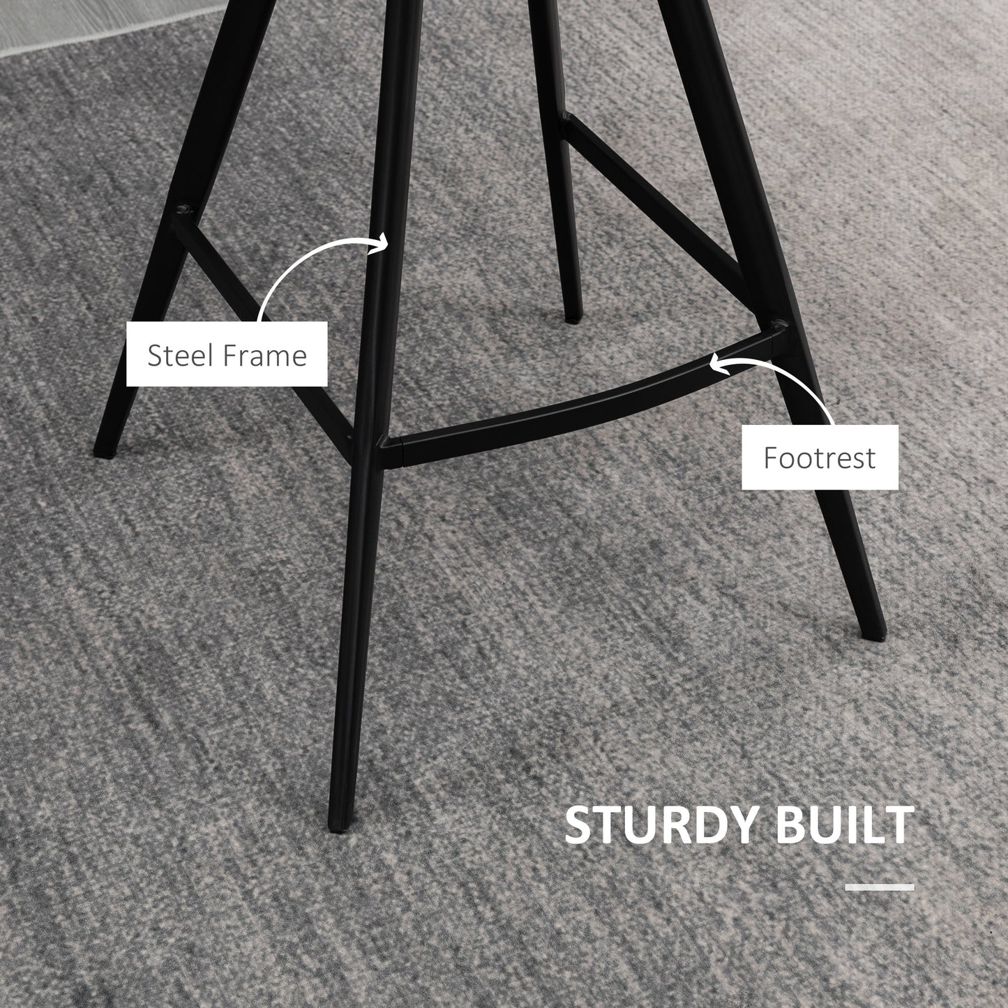 It's time to bring some serious style into your home with these two bar stools from HOMCOM. Vintage-looking worn-out microfibre upholstery covers the seats, with a quilted texture for extra retro points. The tub-shaped seats are smoothly curved, with padding for comfort; they have a high back for body support. A steel frame for a strong and supportive core, complete with handy footrests.