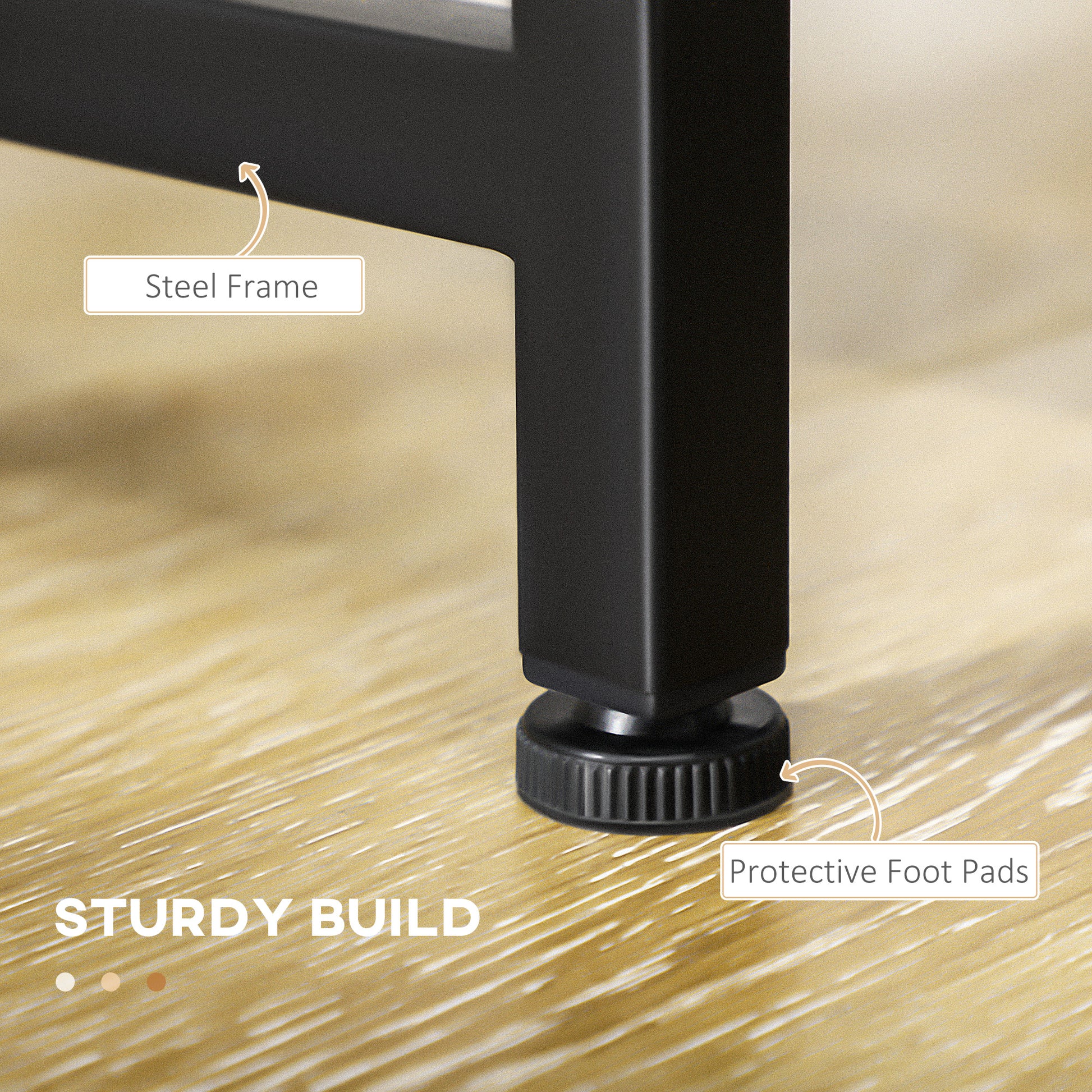 - Powder coated steel legs for strong support, with protective foot pads