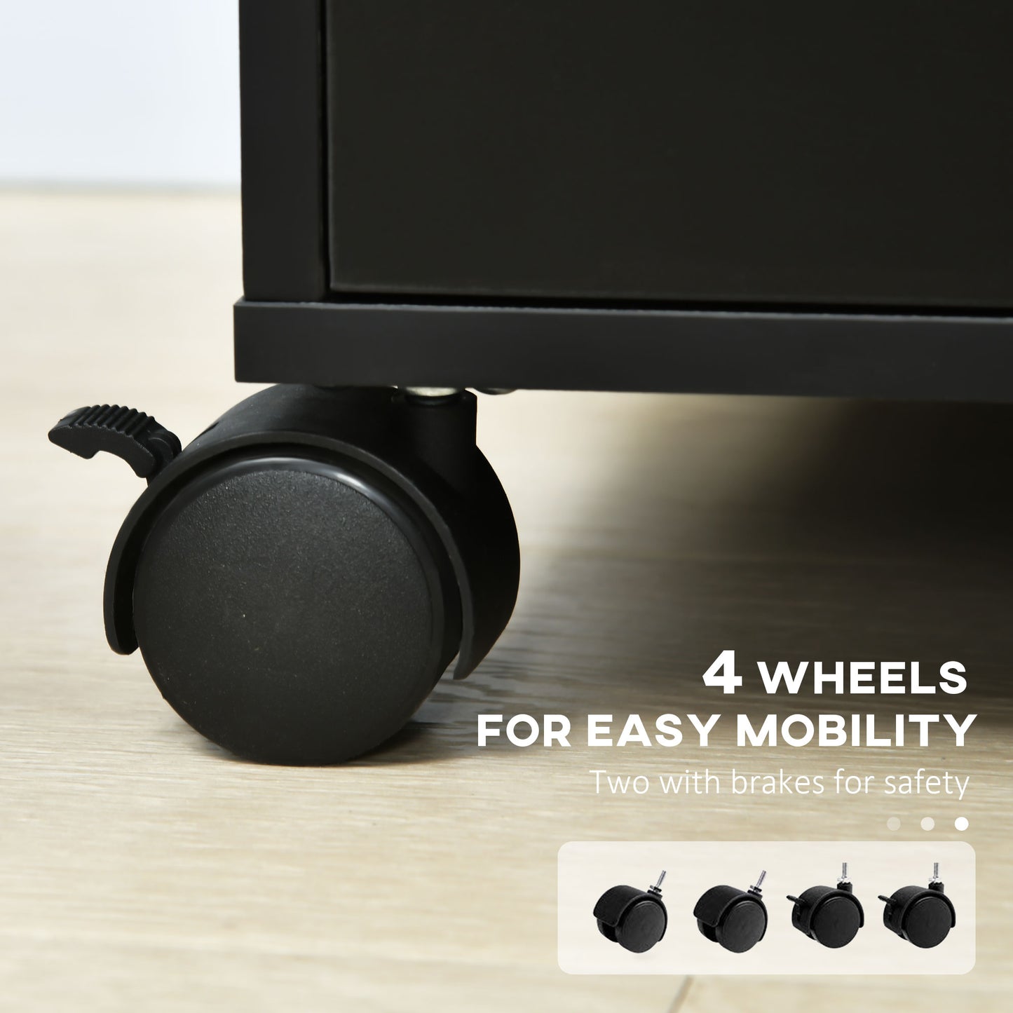 HOMCOM 5 Drawer Mobile Filing Cabinet, Vertical File Cabinet, Modern Rolling Office Storage Organizer Cupboard, Black