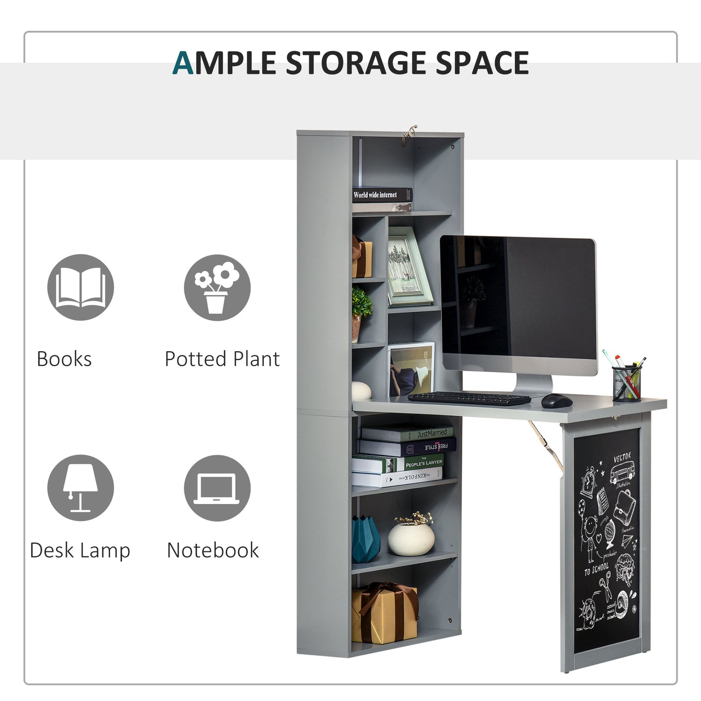 HOMCOM Folding Convertible Desk with Blackboard Multi-function Computer Office Workstation Side Shelf for Home Office, Grey