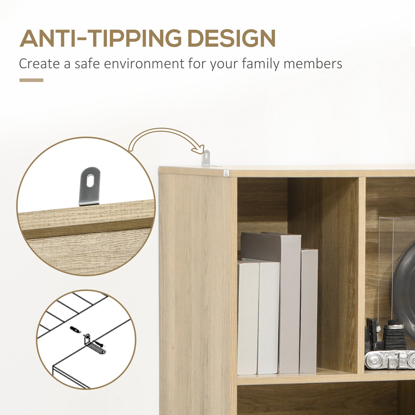 HOMCOM Modern Bookcase with Bottom Cabinet and 6 Open Shelves, Freestanding Bookshelf for Study Living Room Home Office, Natural and Dark Grey