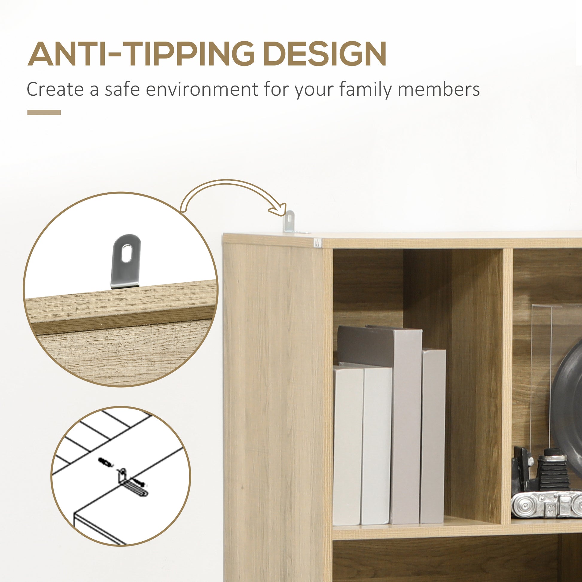 With its two-tone colour design, this HOMCOM is a stylish addition for all home and office spaces. Made from sturdy particle board, suitable for everyday use, with anti-tipping straps for safety. Features six open shelves for your books and more, with two bottom drawers to keeps things discreetly stored. Complete with wooden legs for support.