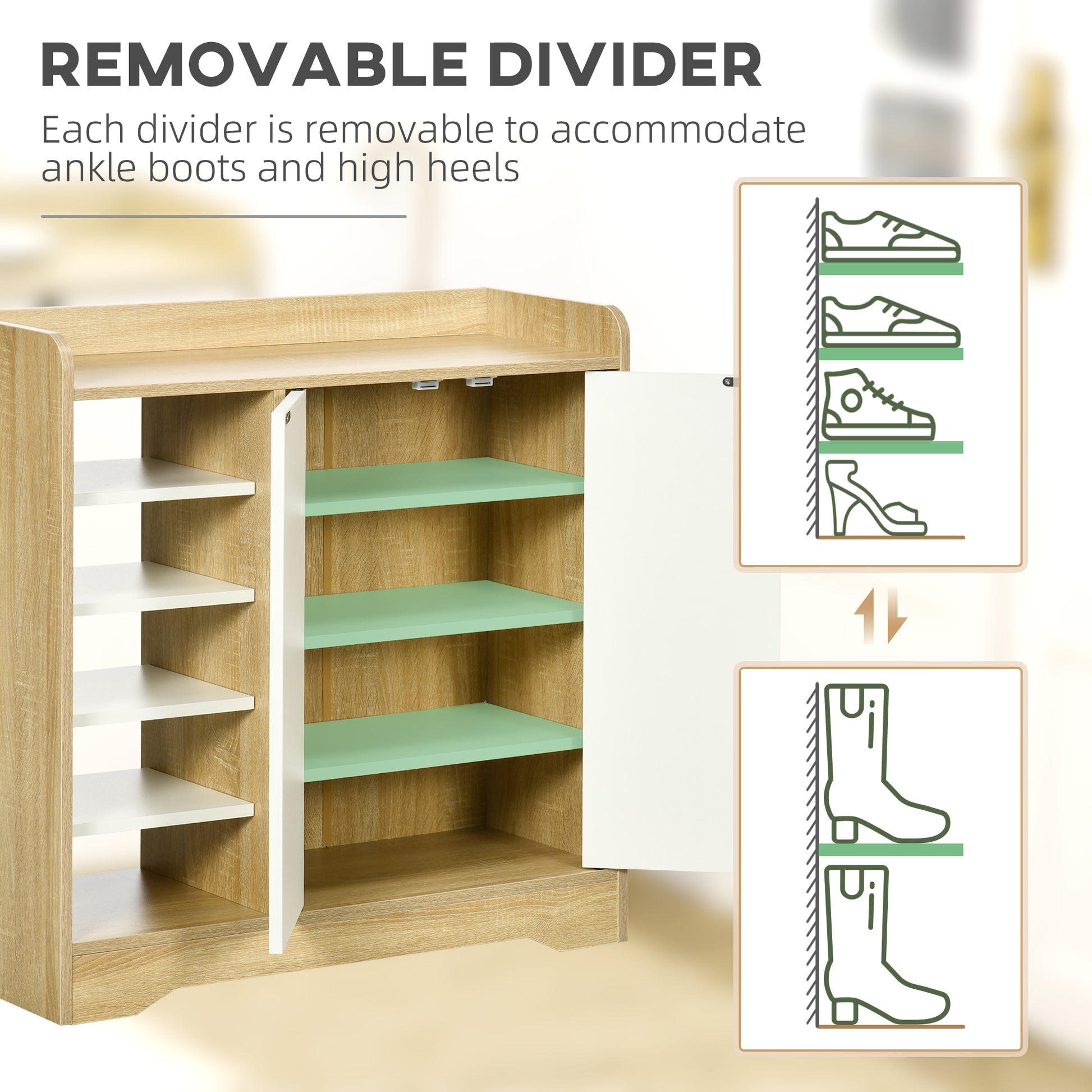 HOMCOM Shoe Storage with Double Doors and Open Shelves 13 Pair Shoe Storage Organizer for Entryway Hallway Natural and White