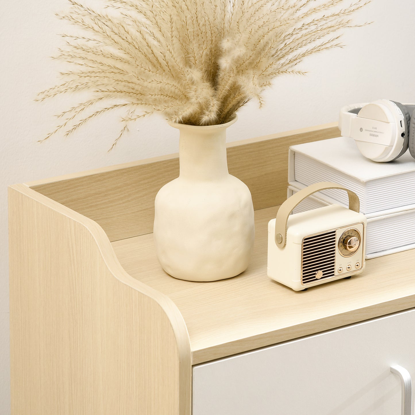 This HOMCOM shoe storage cabinet has three inner shelves, holding up to nine pairs of shoes. You can remove shelves to fit ankle boots and high heels. Also, you can store and display your keys, photo albums, etc. on the top shelf. Made from particle board for durability, with anti-tipping straps included for safety.