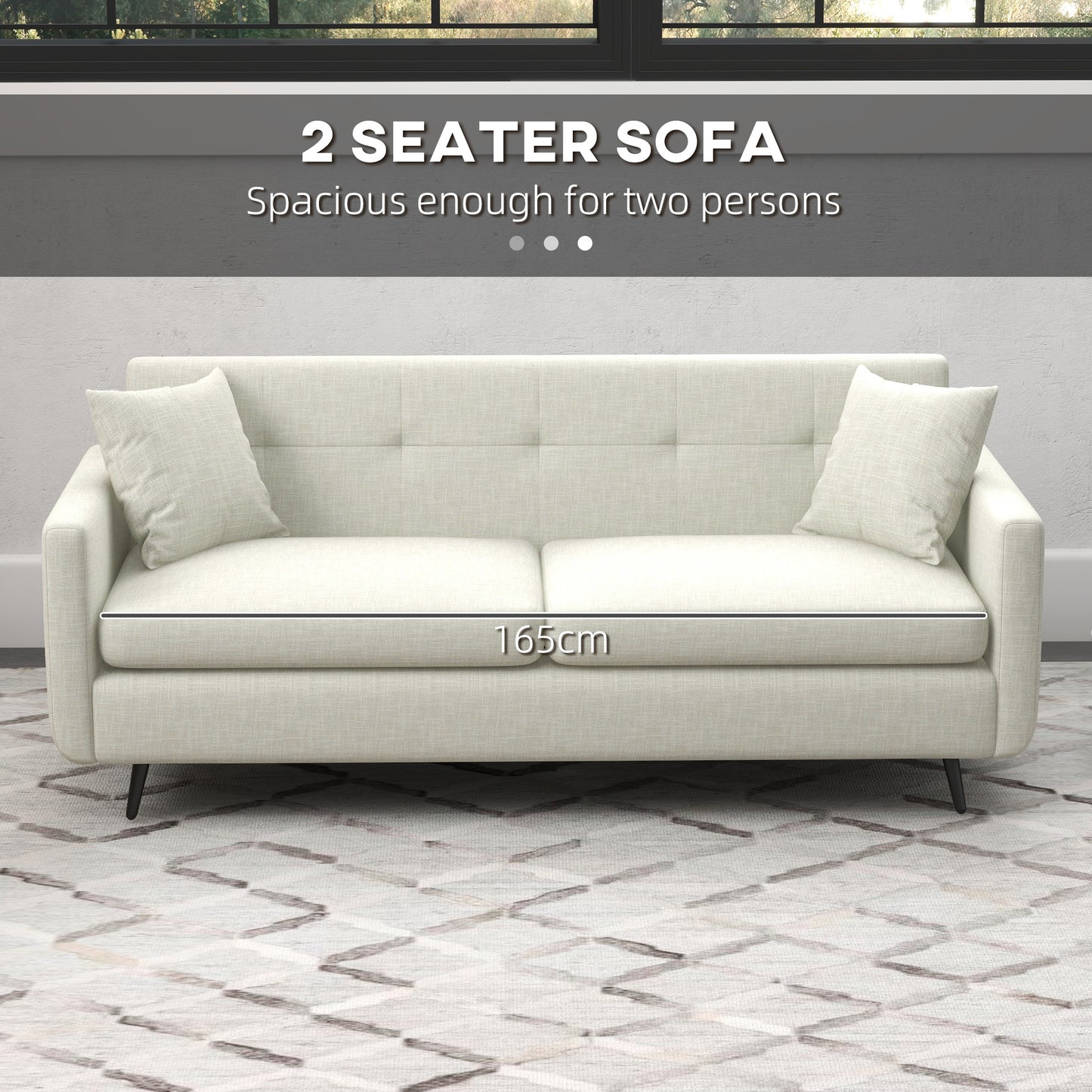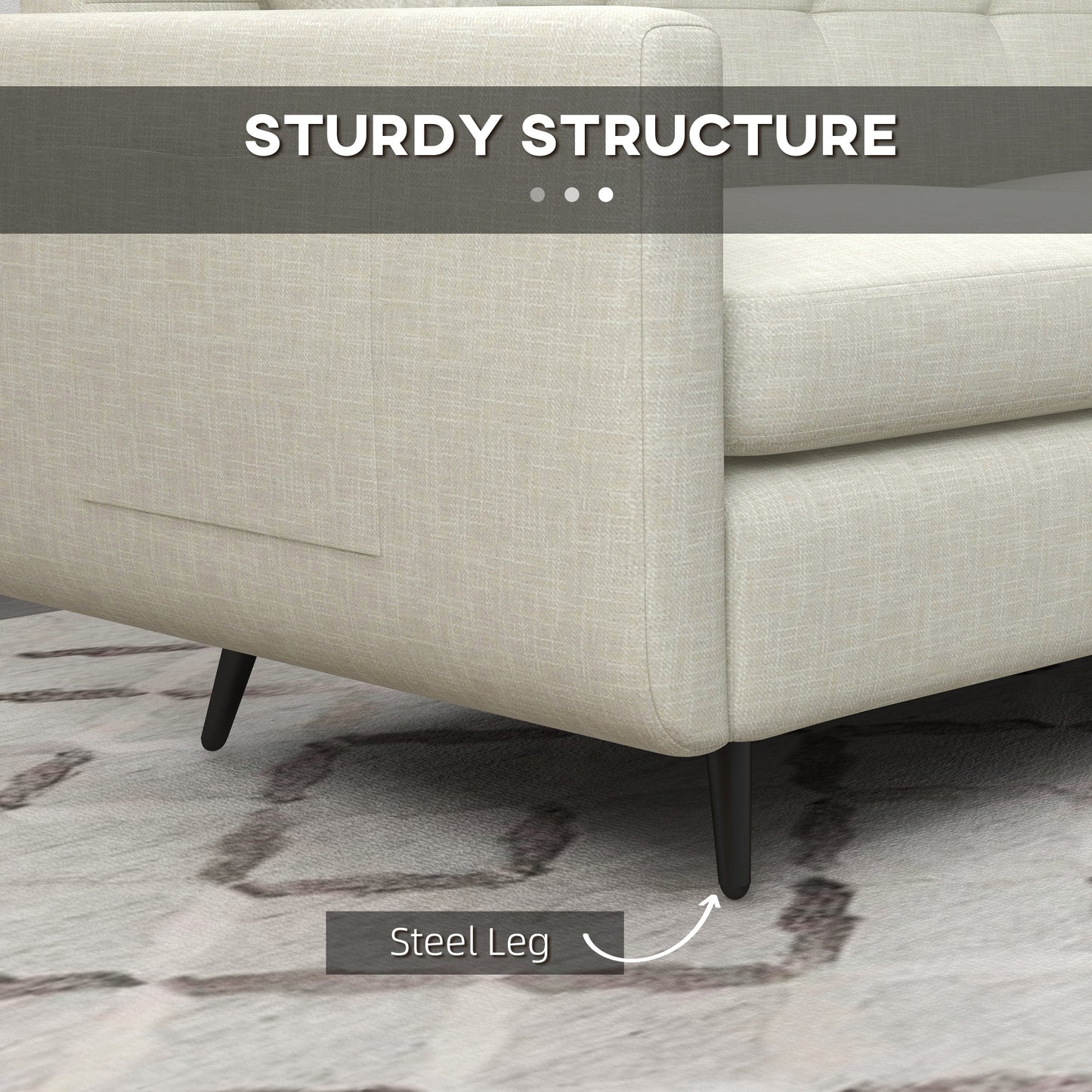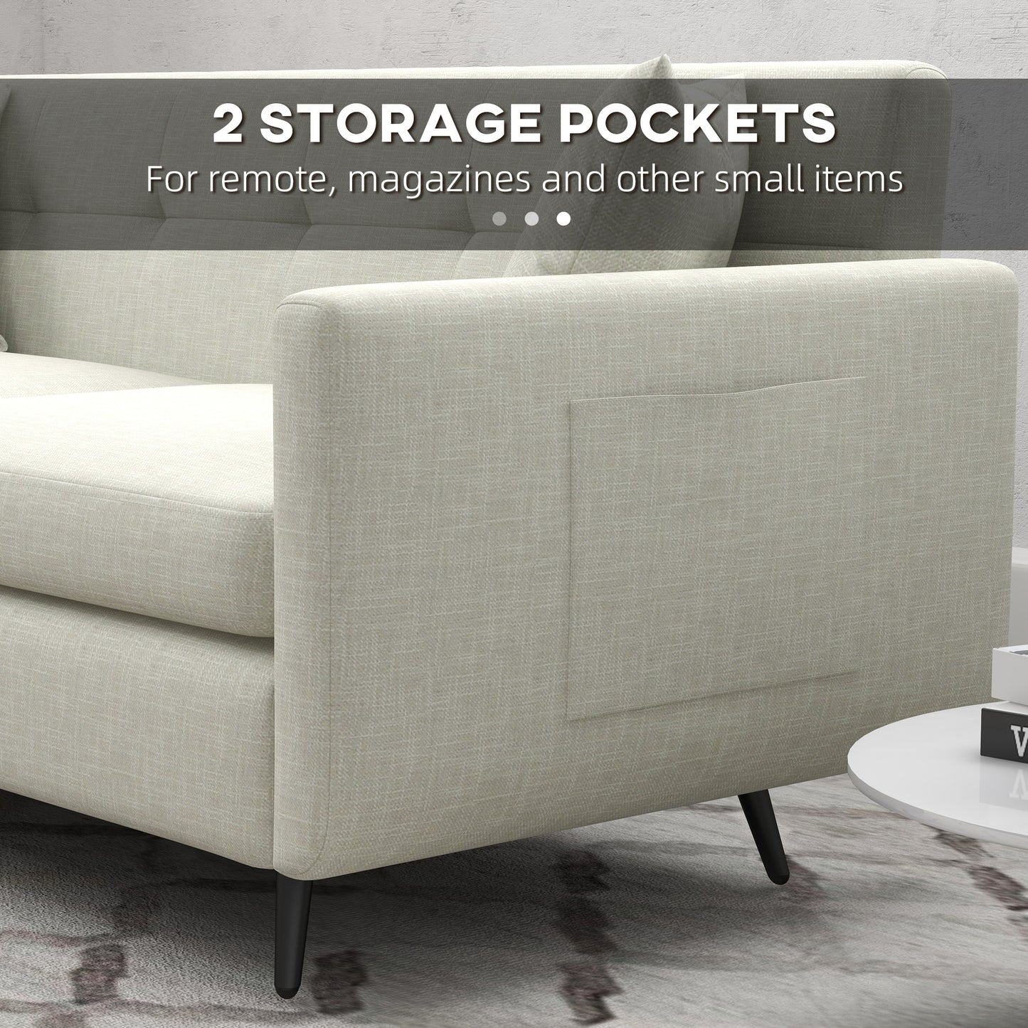 HOMCOM 165cm 3 Seater Sofa for Living Room, Modern Fabric Couch, Tufted Small Couch Sofa Settee with Steel Legs and 2 Storage Pockets for Bedroom and Home Office, Beige