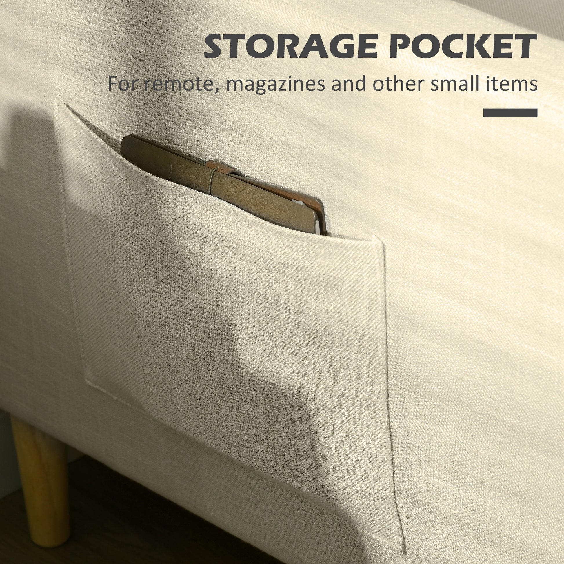 HOMCOM Two Seater Sofa for Living Room, Modern Fabric Couch with Wood Legs and 2 Pockets for Bedroom and Home Office, Beige