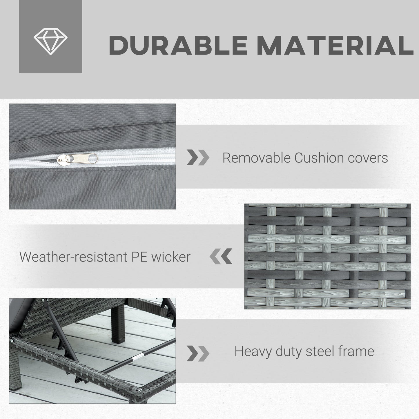 Outsunny PE Rattan Sun Lounger with Soft Padded Cushion, Patio 5-level Reclining Sun Lounger with Headrest, Grey