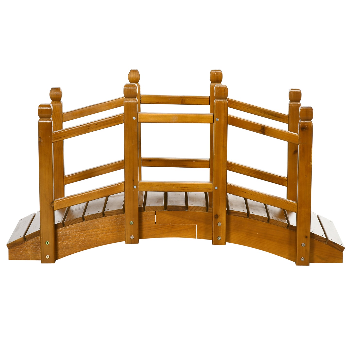 Outsunny Wooden Garden Bridge with Safety Railings, Arc Footbridge for Pond Backyard Stream, Brown