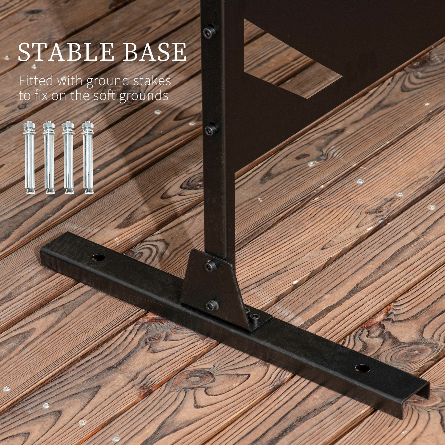 A dividing screen for patio, garden, outdoor - and even indoor spaces. This Outsunny 198 x 122cm piece will bring a pretty and decorative touch to your space, whilst creating a private section whenever you require it. It's made from steel for strength, crafted into a cut-out design for a beautiful look which fits in effortlessly with your garden surroundings. Comes complete with two long legs for balance.