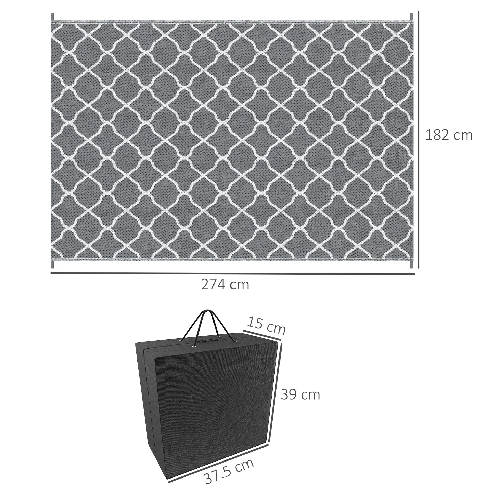 Outsunny Reversible Outdoor Rug with Carry Bag, Waterproof Plastic Straw Mat for Garden, Deck, RV, Picnic, Beach, Camping, 182 x 274cm, Grey