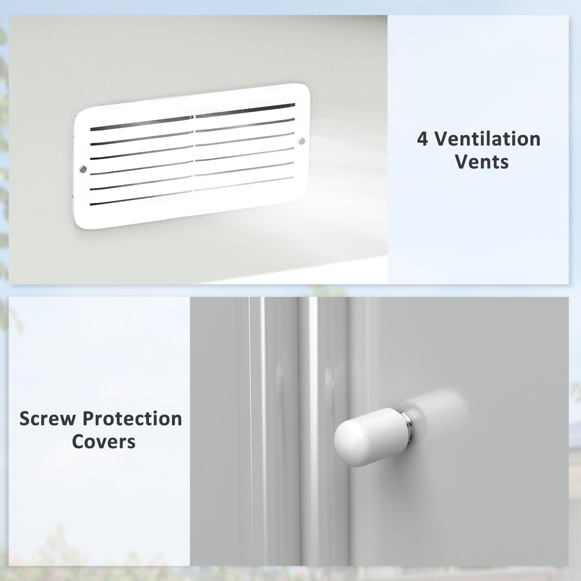 Keep your garden equipment and outdoor essentials locked away securely with this metal shed from Outsunny. Built from galvanised steel for strength, it comes with a lockable double sliding door on the front for easy access and four vents for air to circulate and prevent moisture buildup. The garden tool shed is finished with a protective weather coating and a foundation kit for it to stand level on the ground.