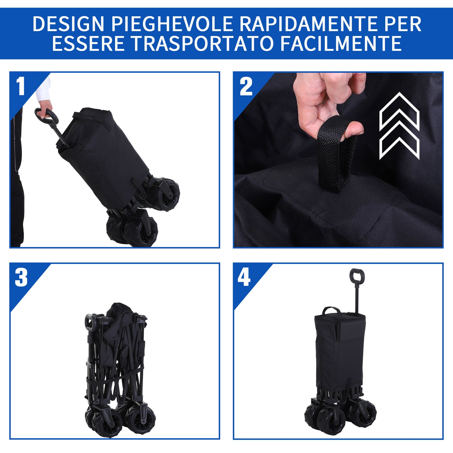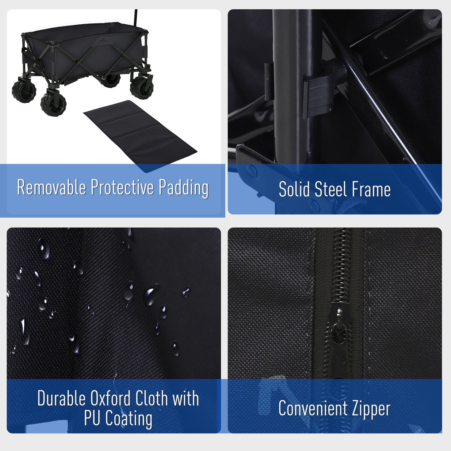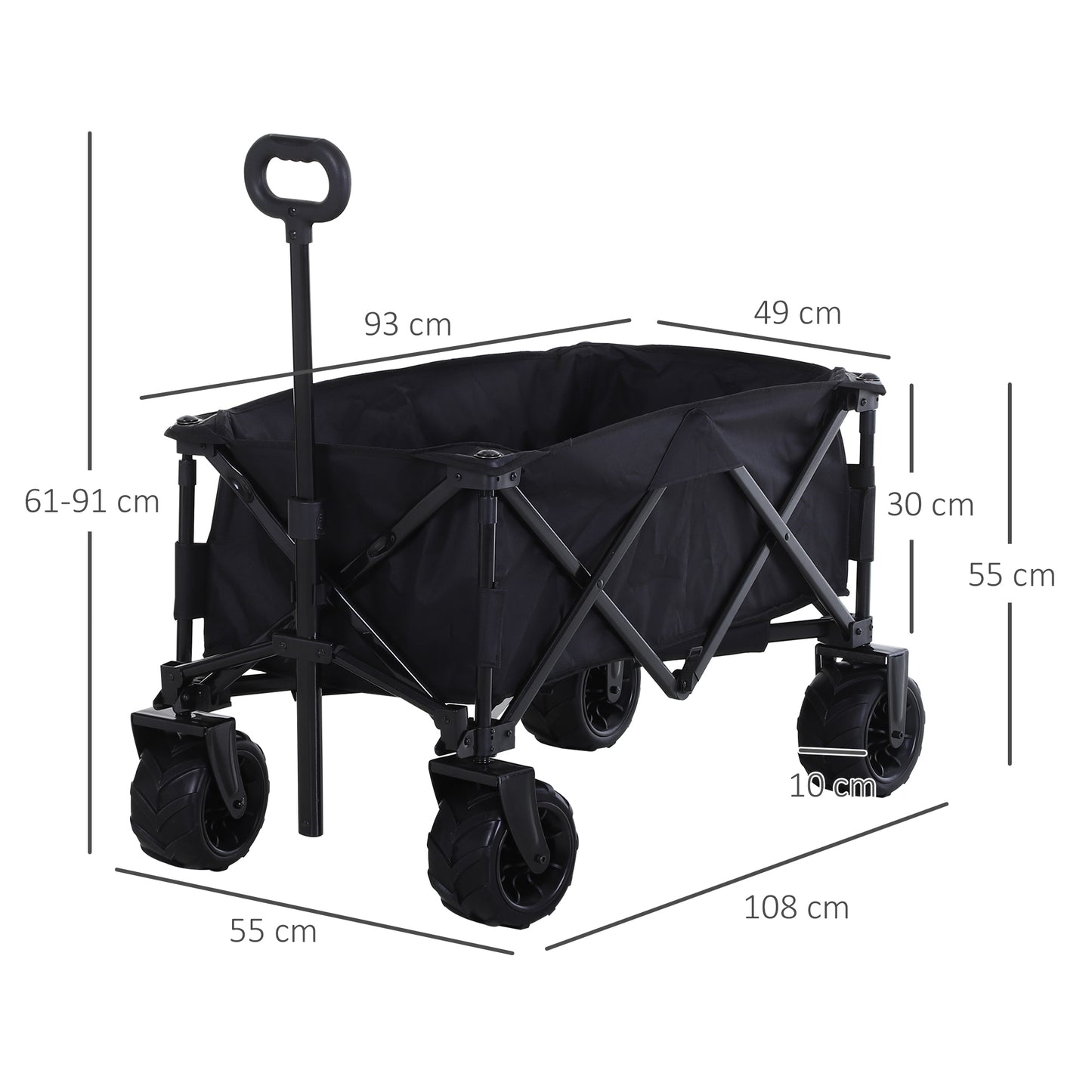 Outsunny Outdoor Folding Garden Trolley on Wheels, Capming Cargo Wagon Cart Trailer w/ Handle, Wheels for Beach Garden, Black