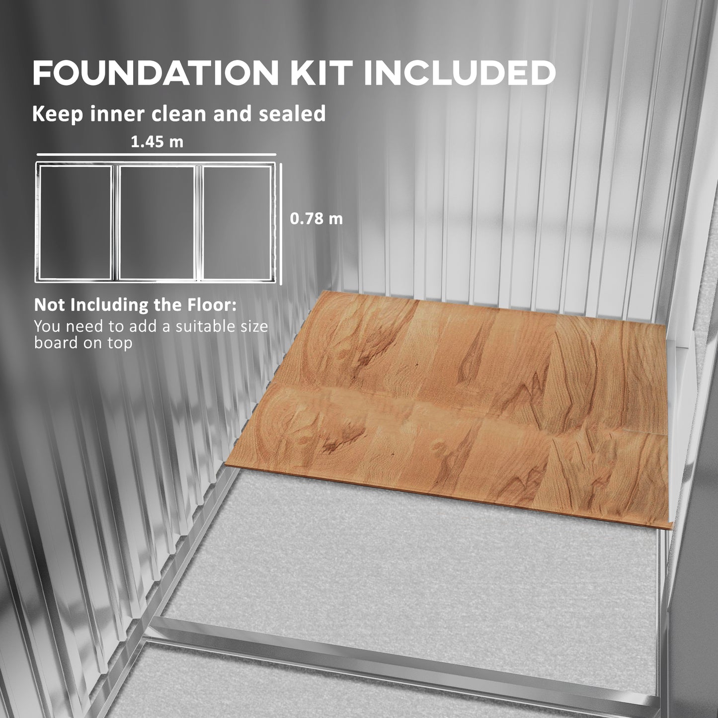Outsunny Metal Garden Shed, Outdoor Lean-to Shed for Tool Motor Bike, with Adjustable Shelf, Lock, Gloves, 5'x3'x6', Grey