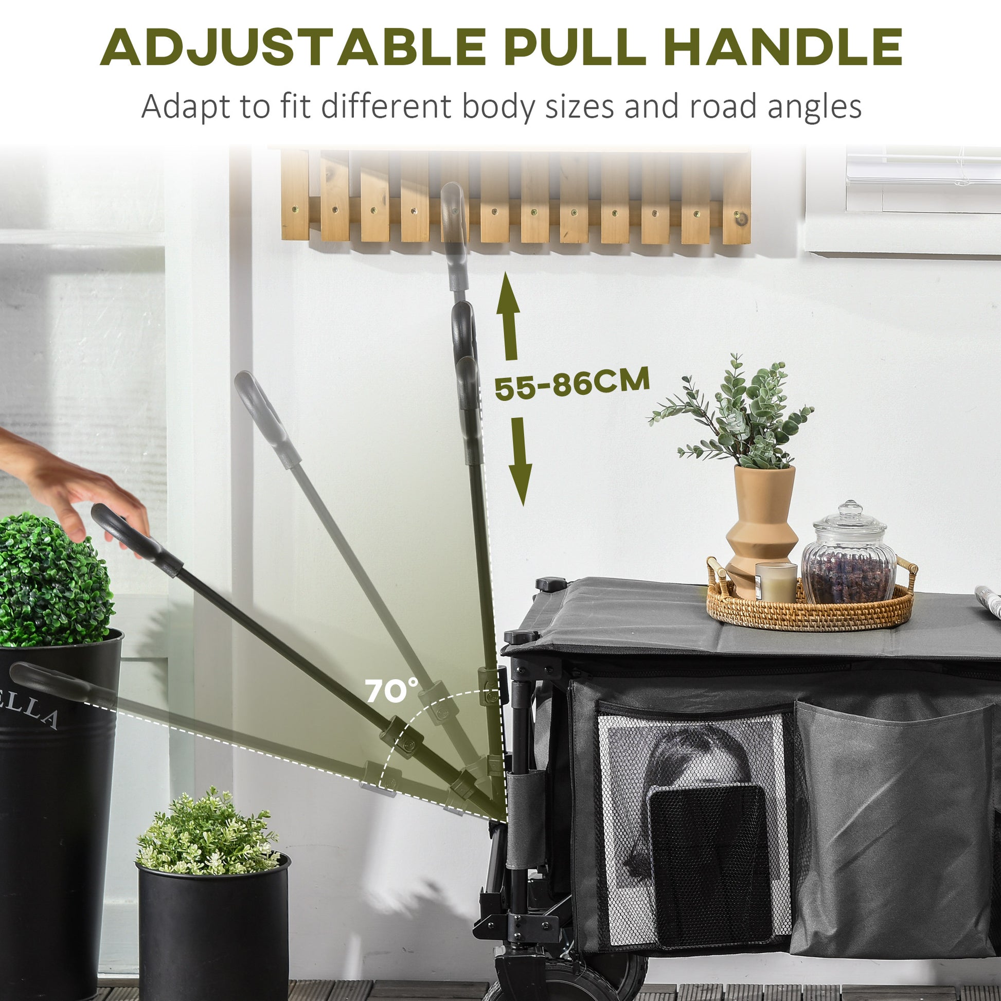 Outsunny Garden Trolley, Cargo Traile on Wheels, Folding Collapsible Camping Trolley, Outdoor Utility Wagon, Dark Grey