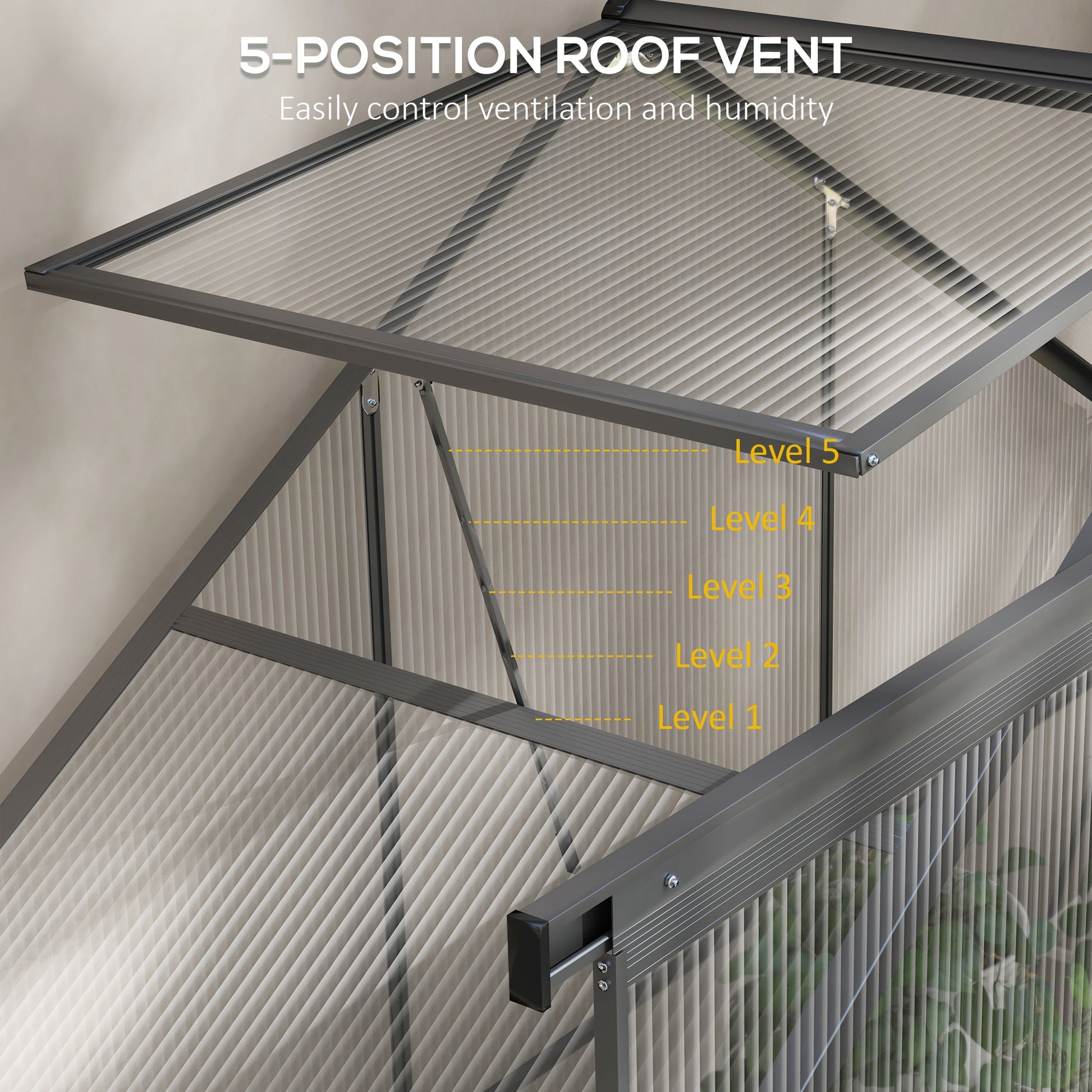 Outsunny 6 x 2.5ft Polycarbonate Greenhouse Walk-In Green House with Rain Gutter, Sliding Door, Window, Foundation, Dark Grey
