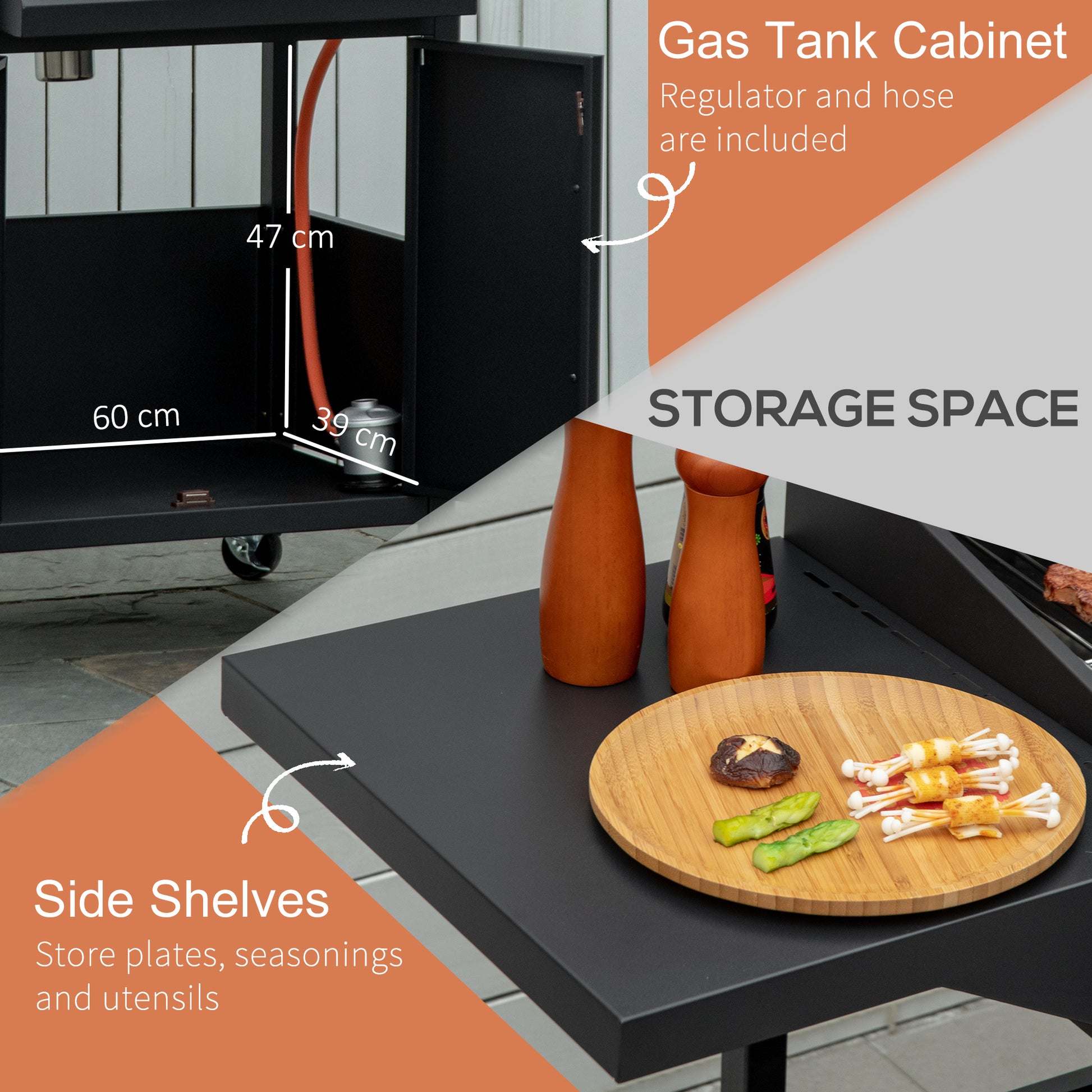 Outsunny 4 Burner Gas BBQ Grill Outdoor Portable Barbecue Trolley w/ Warming Rack, Side Shelves, Storage Cabinet, Thermometer