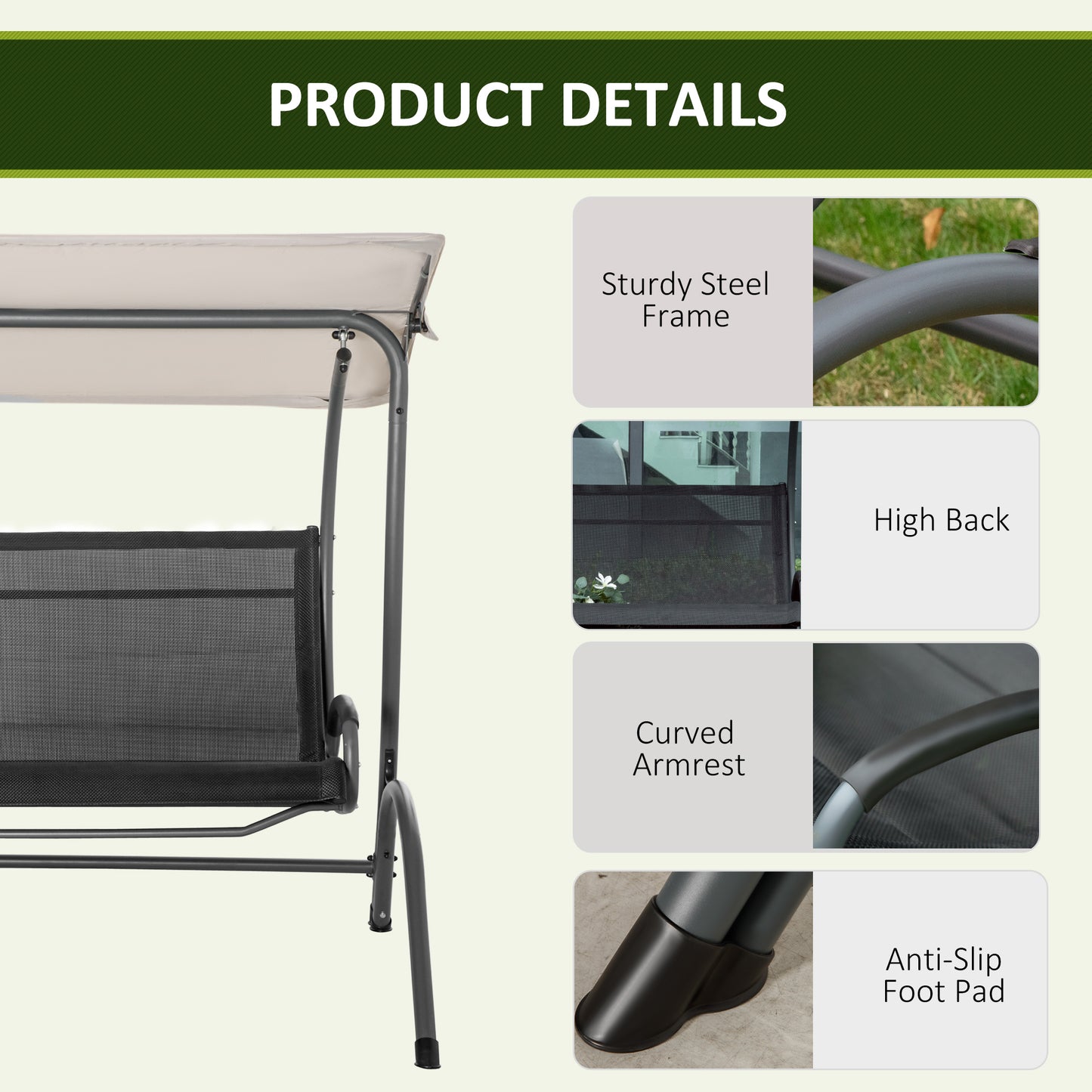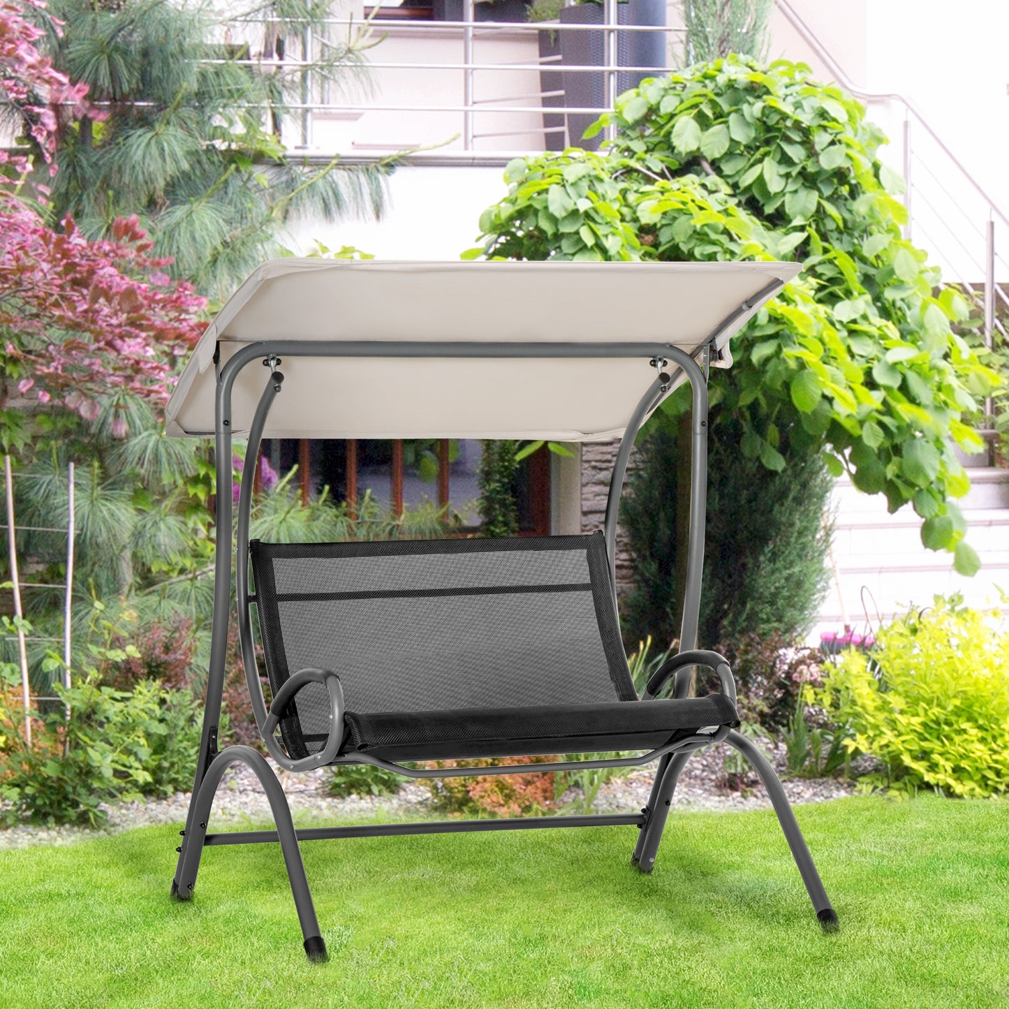 Outsunny 2 Seater Garden Swing Seat Double Bed Swing Chair Outdoor Hammock Bench w/ Adjustable Tilting Canopy, Texteline Seats and Steel Frame, Beige