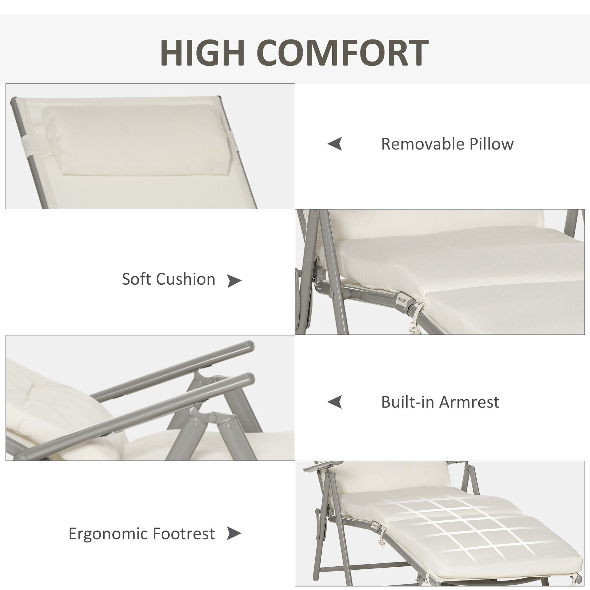 Outsunny Sun Lounger Steel Frame Outdoor Folding Chaise Texteline Lounge Chair Recliner with Headrest & 7 Levels Adjustable Backrest, Cream White