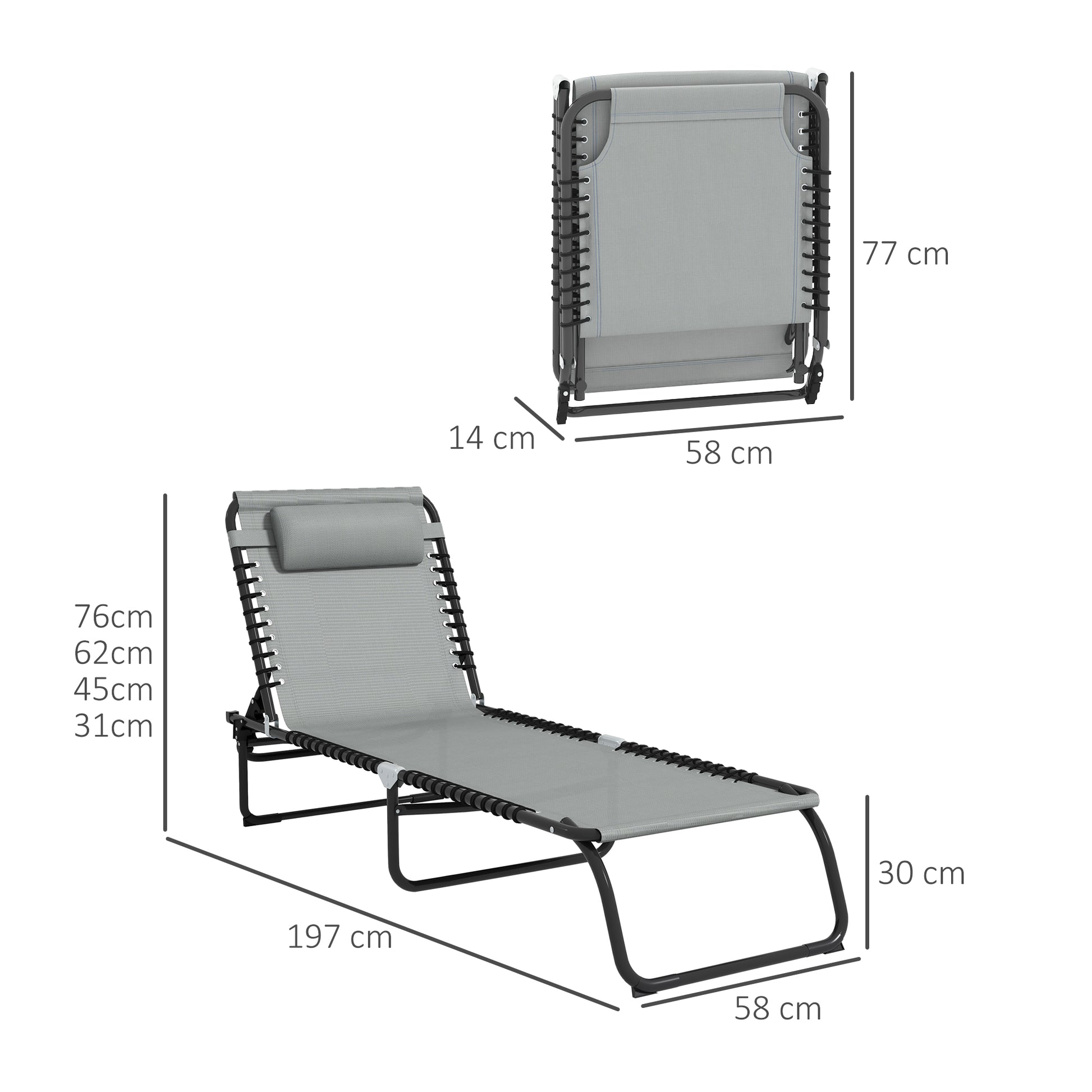 - 4-Level Backrest Height: 76cm, 62cm, 45cm, 31cm