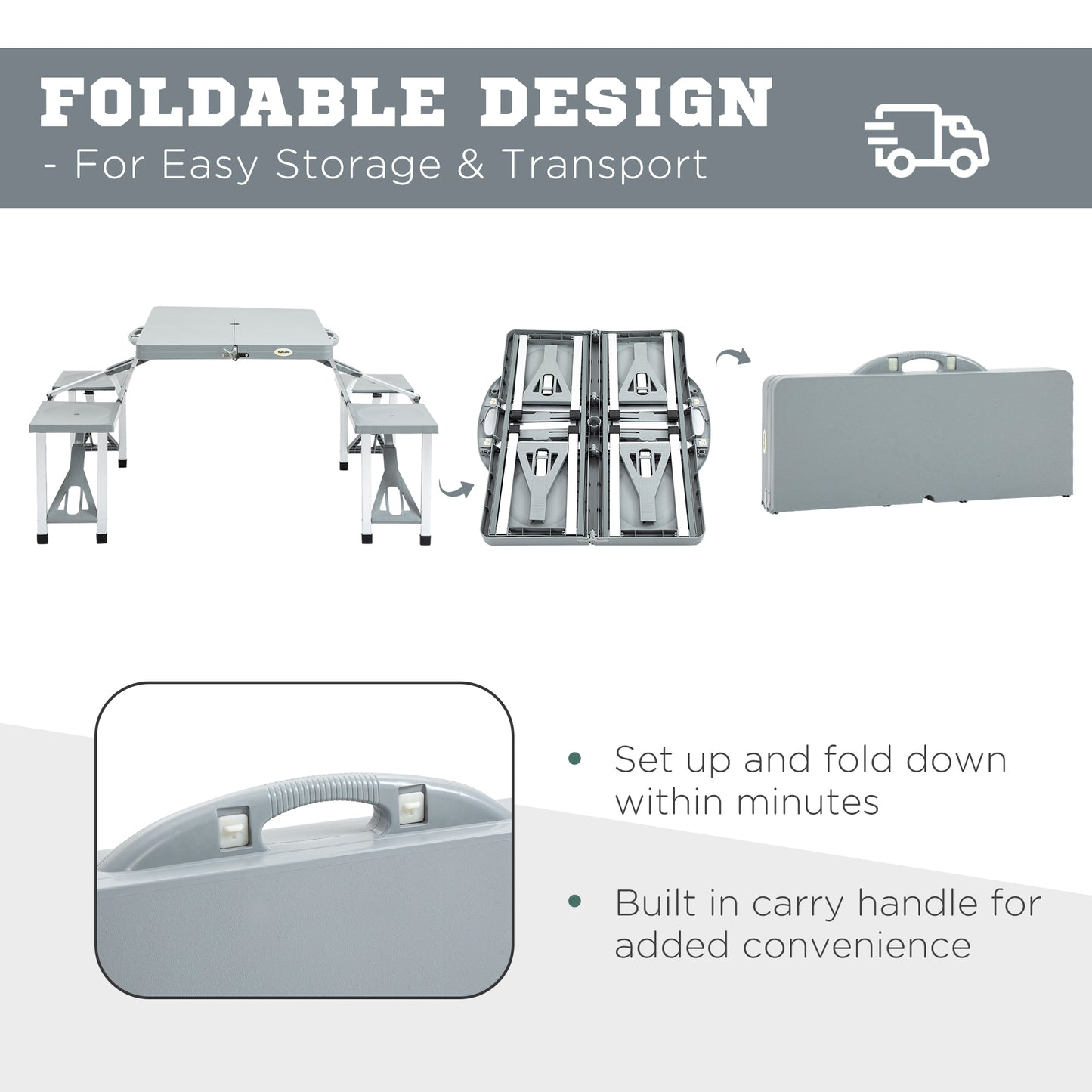 Outsunny Aluminium PP 4-Seater Portable Picnic Table and Bench Set Silver