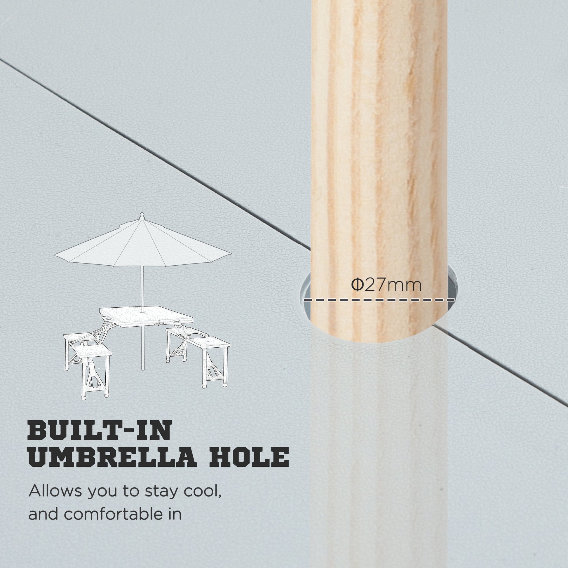 Take the effort out of dining at picnics, BBQs, camping trips and more with this folding picnic table and chairs from Outsunny. Portable in design and collapsing into the suitcase top for easy carrying, its aluminium construction ensures it is lightweight yet tough. This camping table features four seats, and there is plenty of room to sit with friends, whilst the umbrella hole in the middle allows you to keep a parasol to protect you from the sun β making it ideal for use all year round.