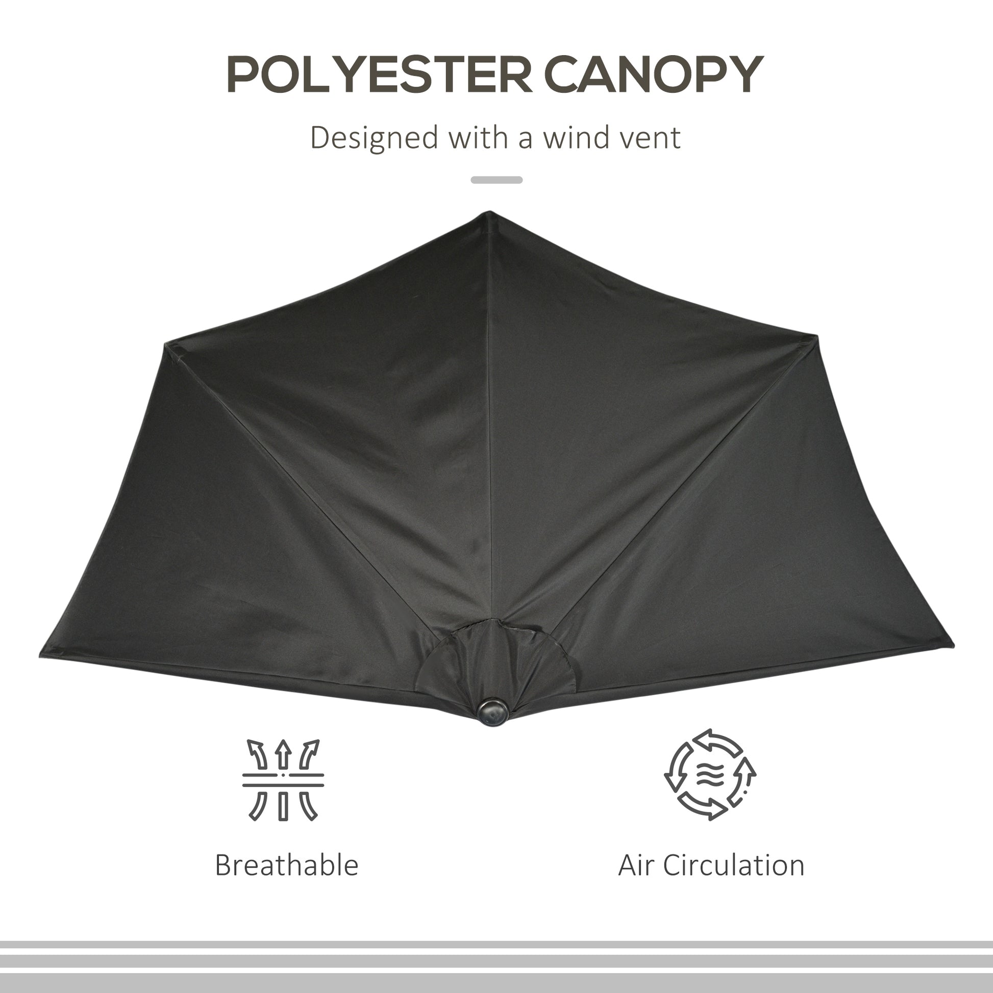 Outsunny 3(m) Half Parasol Semi Round Umbrella Patio Metal Frame Crank Handle for Balcony-- NO BASE INCLUDED, Black