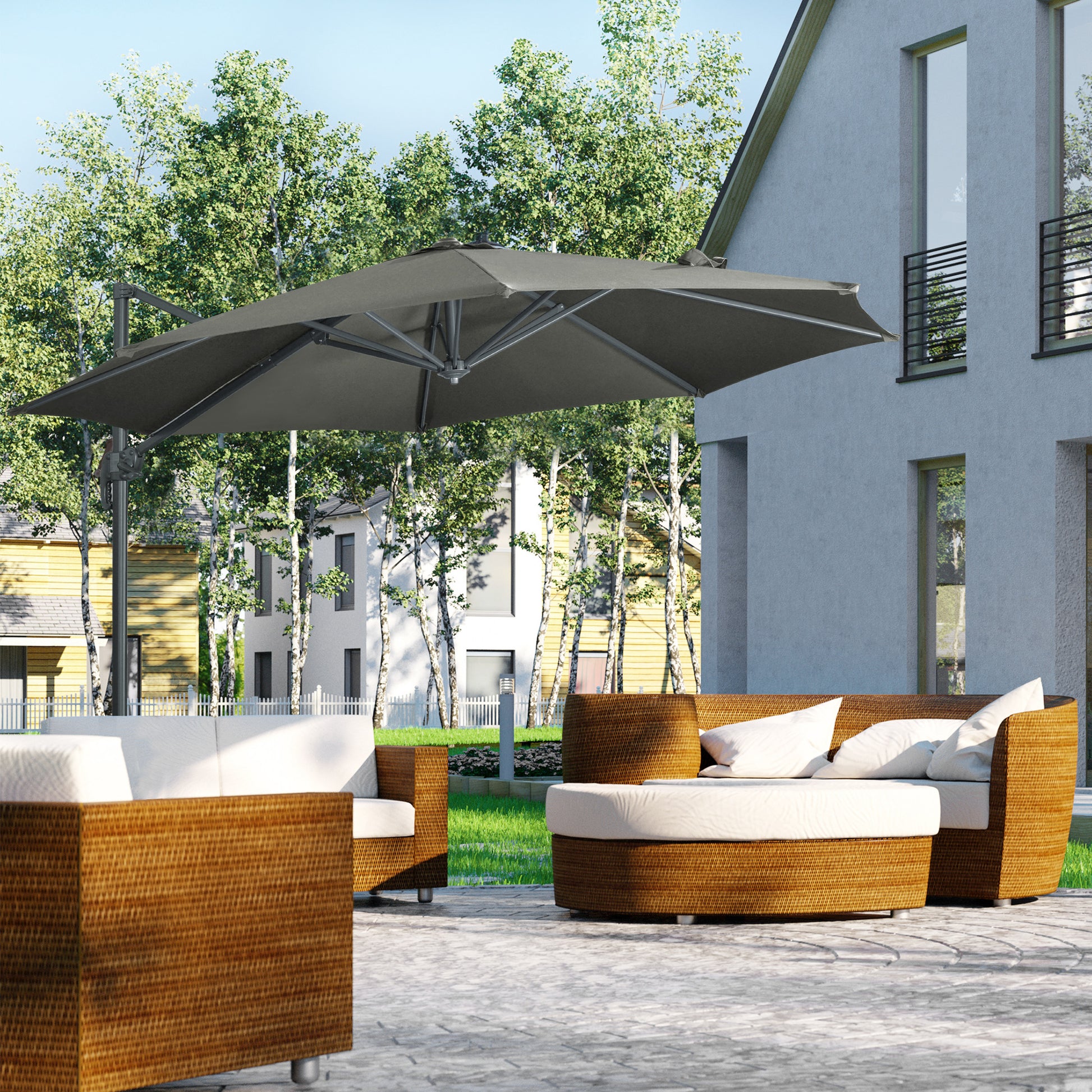 Outsunny 3 x 3(m) Cantilever Parasol with Cross Base, Garden Umbrella with 360° Rotation, Crank Handle and Tilt for Outdoor, Patio, Grey