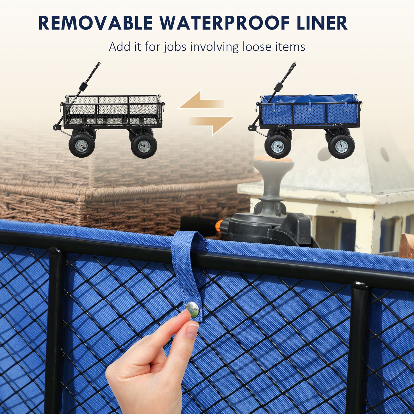 Outsunny 114L Steel Frame Garden Cart Trolley - Blue