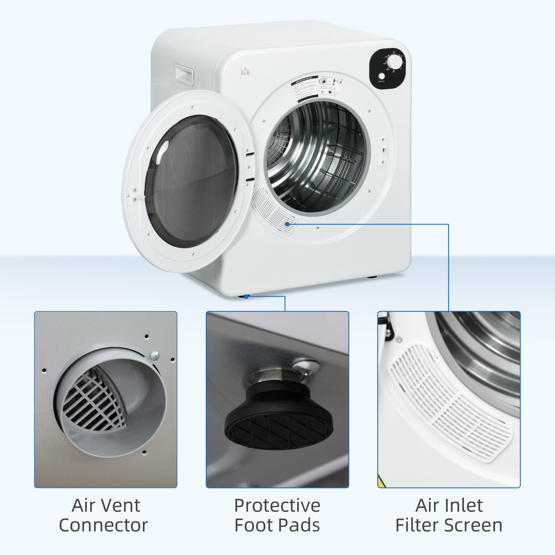 HOMCOM 6kg Vented Tumble Dryer, Freestanding, Wall Mounted, Stackable, Portable Dryer with 7 Programmers, White
